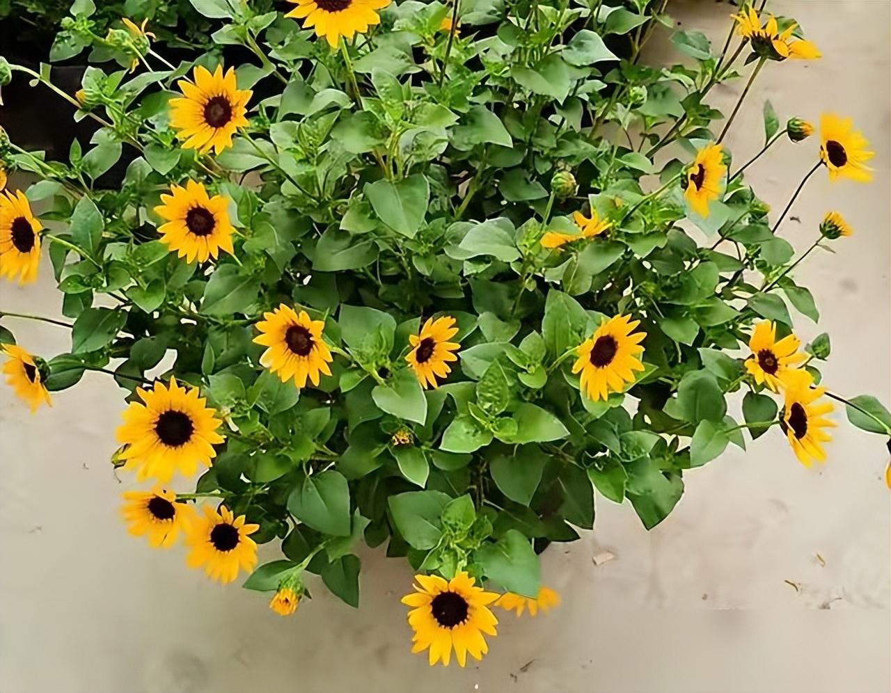 事實證明,這貨是“潛力股”。它屬於向日葵裏的“矮生品種”,分枝能力超強,只要光照給足,能從春天一直開到秋天。但想讓它“天天爆花”,得記住三個“狠招”:第一,“曬到夠”——它比普通向日葵更愛光,最好放在南陽臺或露天窗臺,每天至少曬6小時,光照不足不僅開花少,枝條還會徒長得像“瘦竹竿”;第二,“剪到勤”,花敗後及時剪掉殘花,生長期多打頂,側枝越多,花苞就越多,我上週剛給它打了次頂,現在已經冒出8個新側芽;第三,“喂到飽”,生長期用氮磷鉀均衡的肥料,開花前換成磷鉀肥,薄肥勤施,半個月一次,保證養分不斷供。