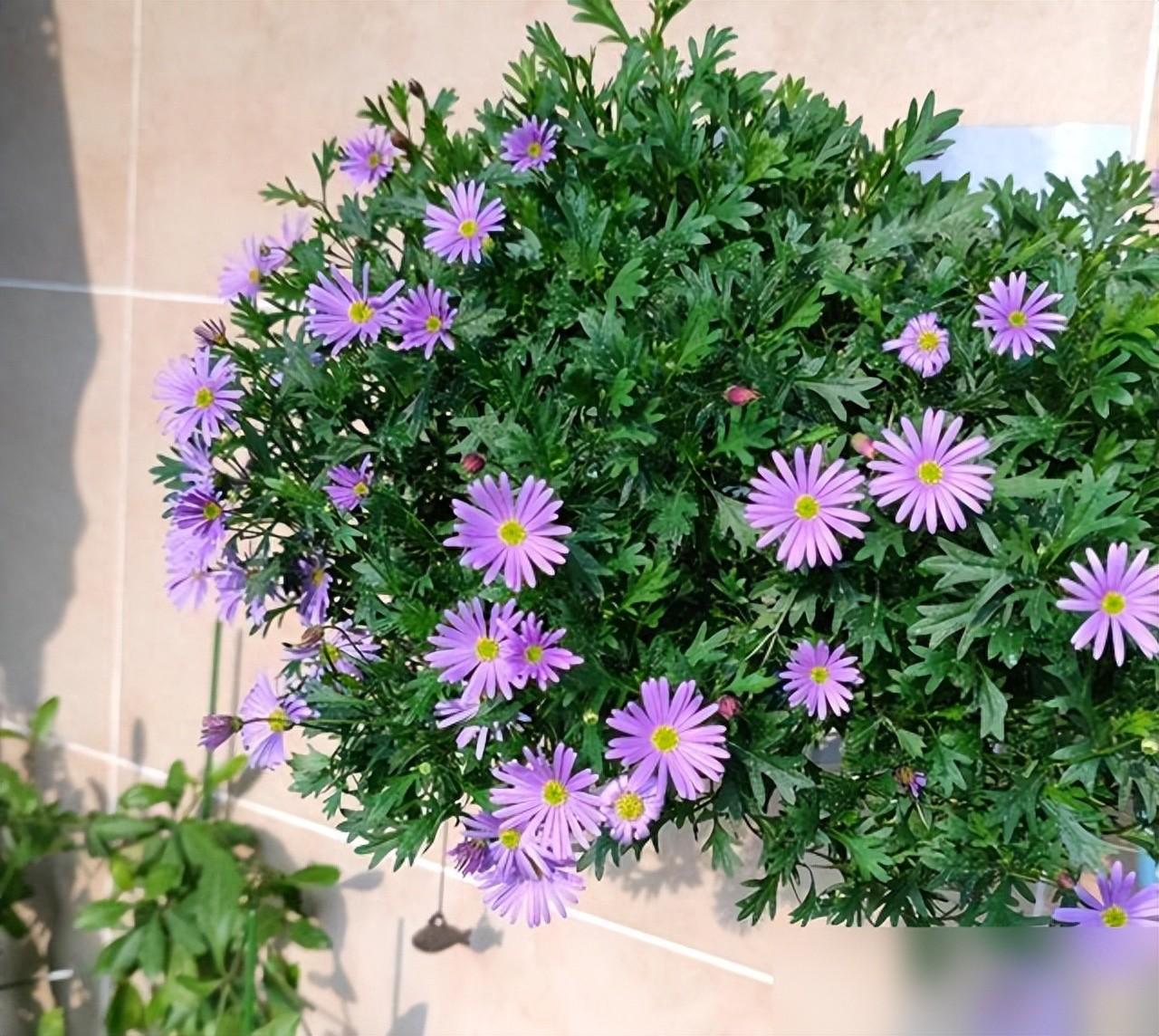 查了權威養護攻略才知道,姬小菊是菊科雁河菊屬多年生草本植物,常見的紫色、白色、粉色品種,花期能從4月一直開到11月,妥妥的“開花勞模”。不過要讓它夏天持續開花,得抓住幾個關鍵:首先是“躲太陽”——其他季節可以隨便曬,但夏天超過35℃的大太陽會灼傷葉片和花朵,得搬到散射光的陽臺角落,比如北窗臺或樹蔭下;其次是“勤澆水”,夏天水分蒸發快,葉片細密的姬小菊1-2天就得澆一次水,茂盛的植株甚至要早晚各澆一次,但要避開中午高溫時段;最後是“防爛根”,梅雨季雨水多,長期淋雨會讓細小的花瓣和葉片腐爛,下雨時最好搬到室內,雨停再搬出來。