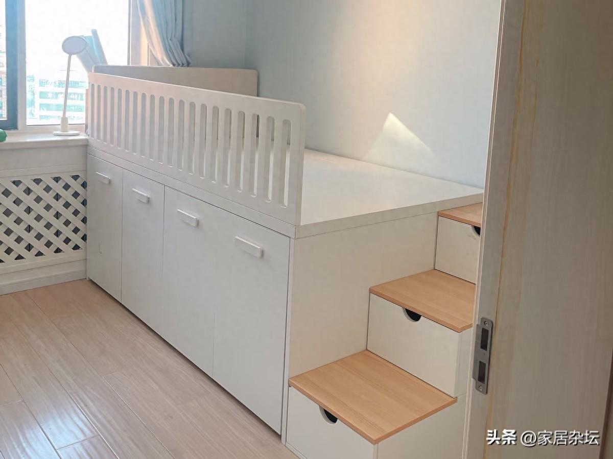 半高牀的底部,可以作爲一個簡易的書桌,或者是作爲收納櫃,收納孩子的玩具。而半高牀上面就是孩子睡覺的地方,側面做成半包圍式,在旁邊再有一個樓梯踏步,也是很完美的。