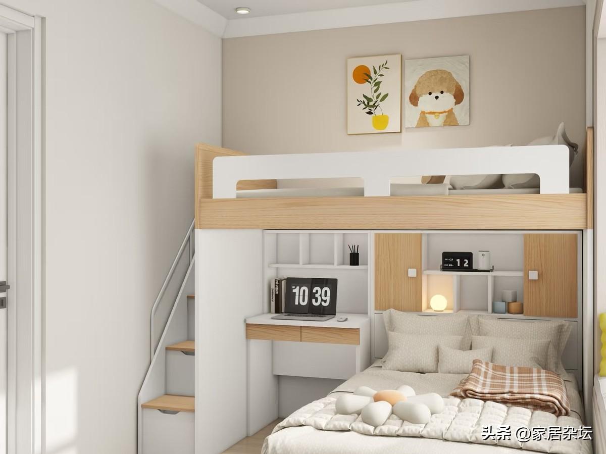 這種裝修設計,特別適合於家裏有兩孩的家庭。因爲很多家庭無法滿足每個小孩都一間房,那麼一間房就可以設置錯位牀。