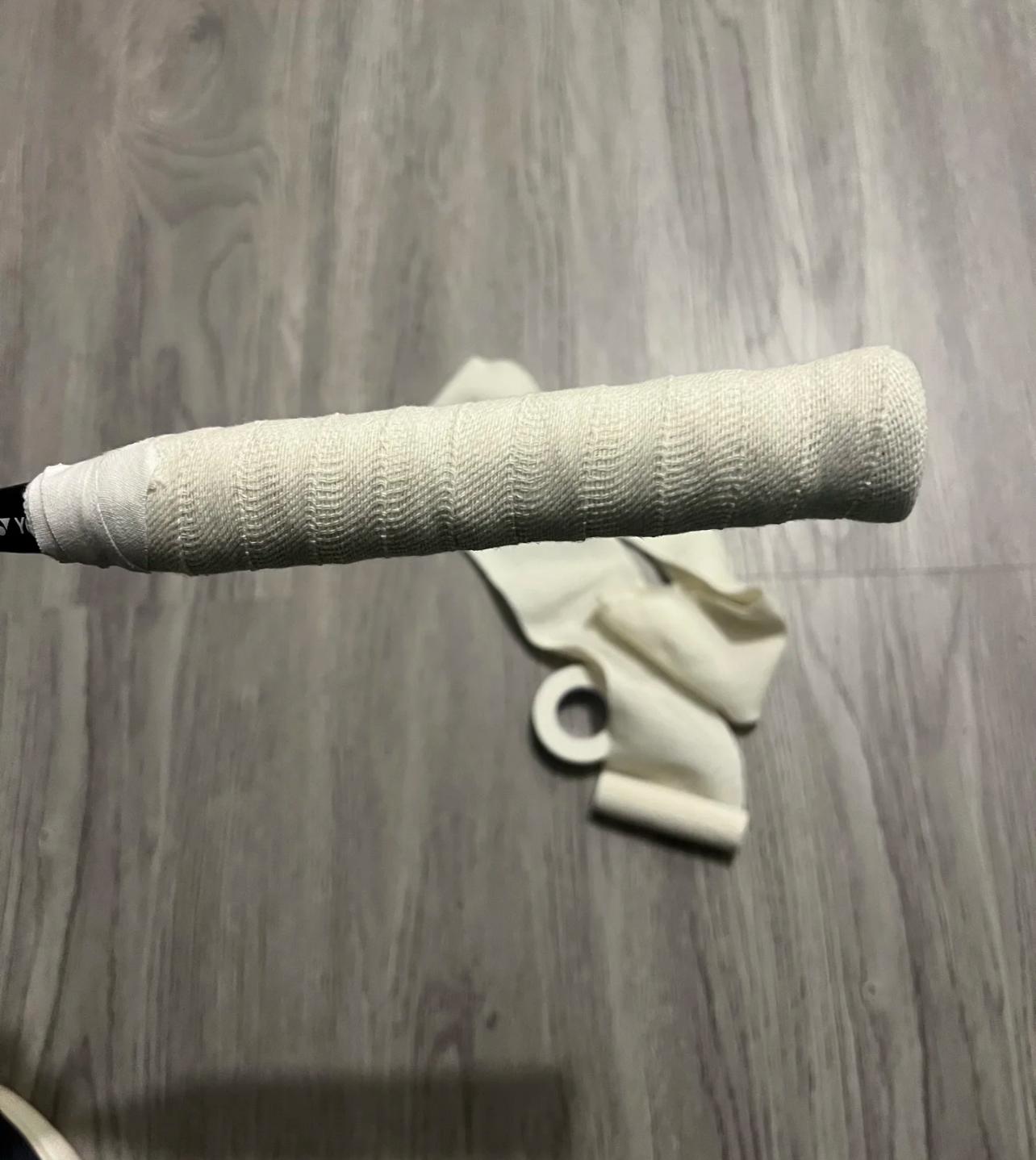 打羽毛球手膠溼了,一時間沒買到新的,翻箱倒櫃找出了一卷醫用繃帶纏在羽毛球手柄上,拿起來試試手感還挺好的,感覺和緩震膜差不多;