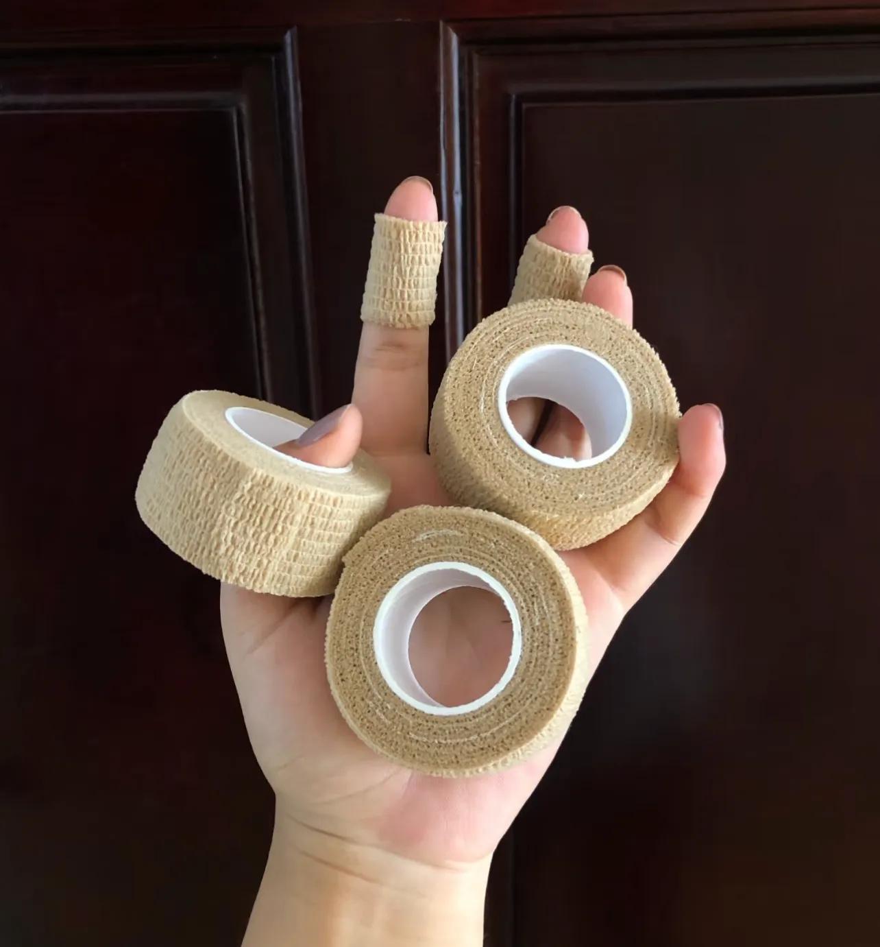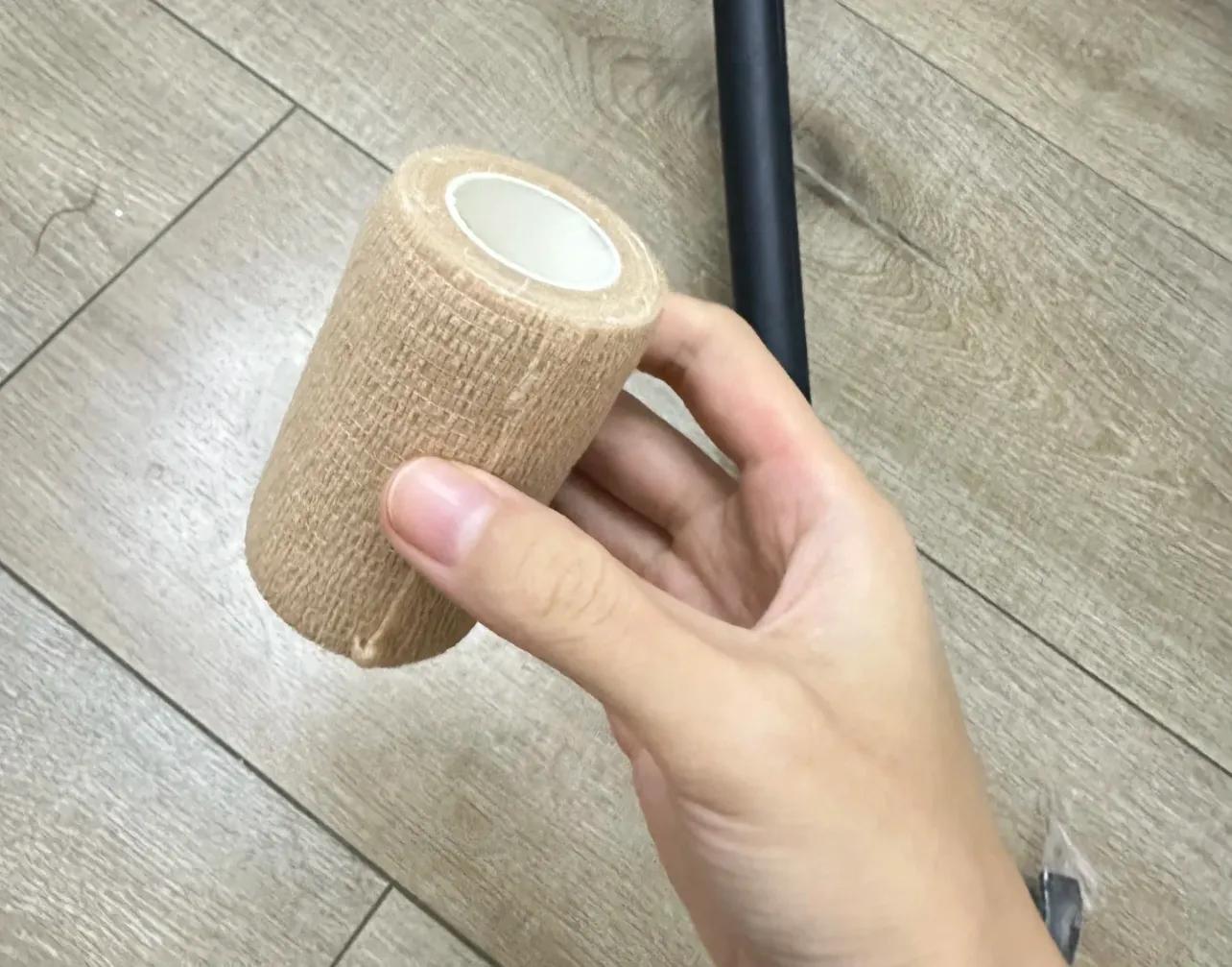 自粘醫用繃帶3秒纏繞原地回血,纏到滿意的鬆緊度和位置,不會粘皮膚,可以用2-3次,髒了不粘了就丟;