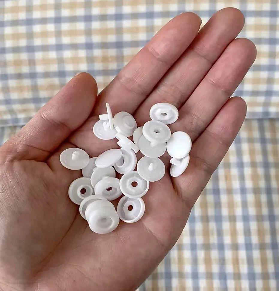 [寶寶的薄衣服、口水巾、枕套都要可用這種釦子。]