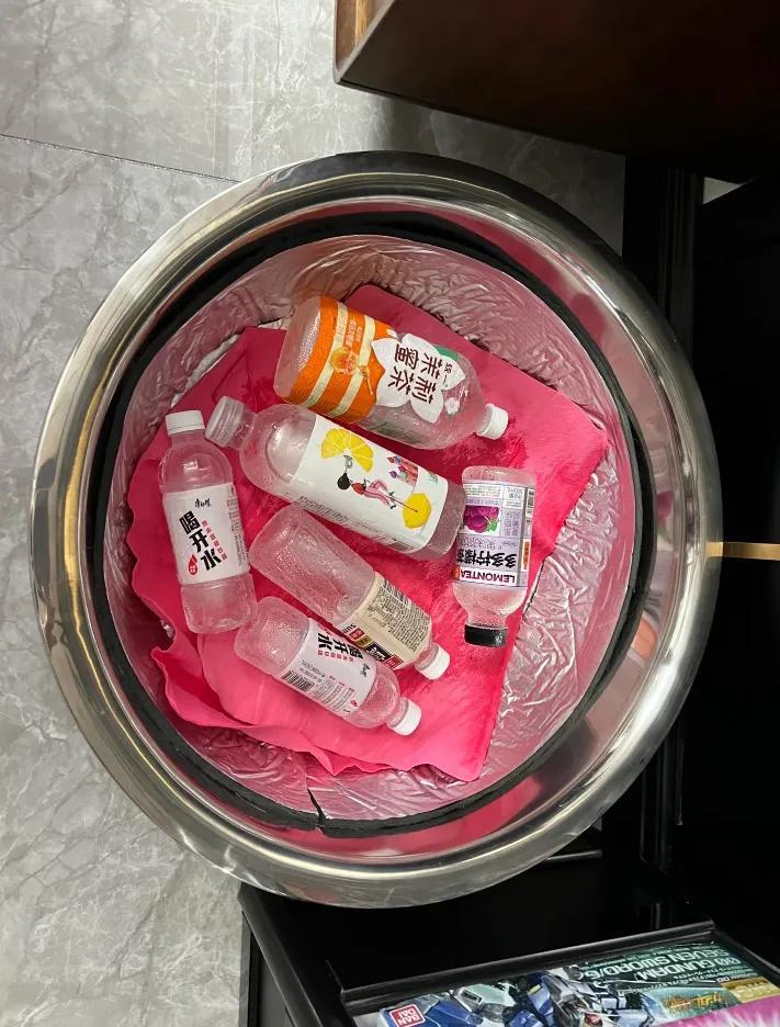 最好選擇雙筋保鮮袋不漏水,把礦泉水倒進去密封,直接平鋪在速凍層。