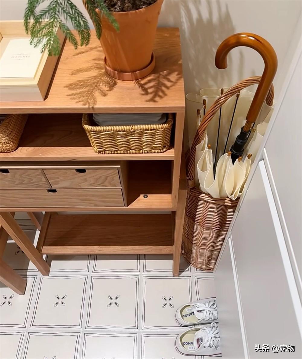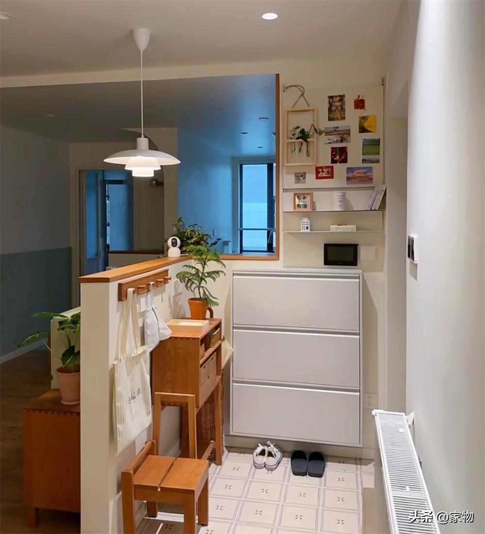 這1㎡的小玄關別看面積不大,但真的是顏值又高又實用,在保證玄關過渡功能的同時,真正做到了採光通風0影響,真是讓我佩服這位姑娘的想法。