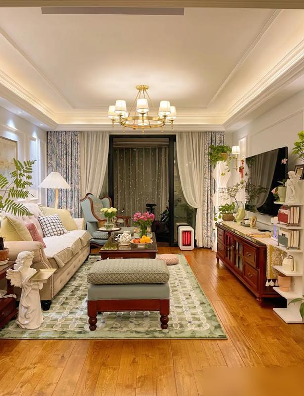 傢俱別貪多,幾件質感好的實木單品足矣,配上布藝沙發和軟地毯,實用又顯檔次。