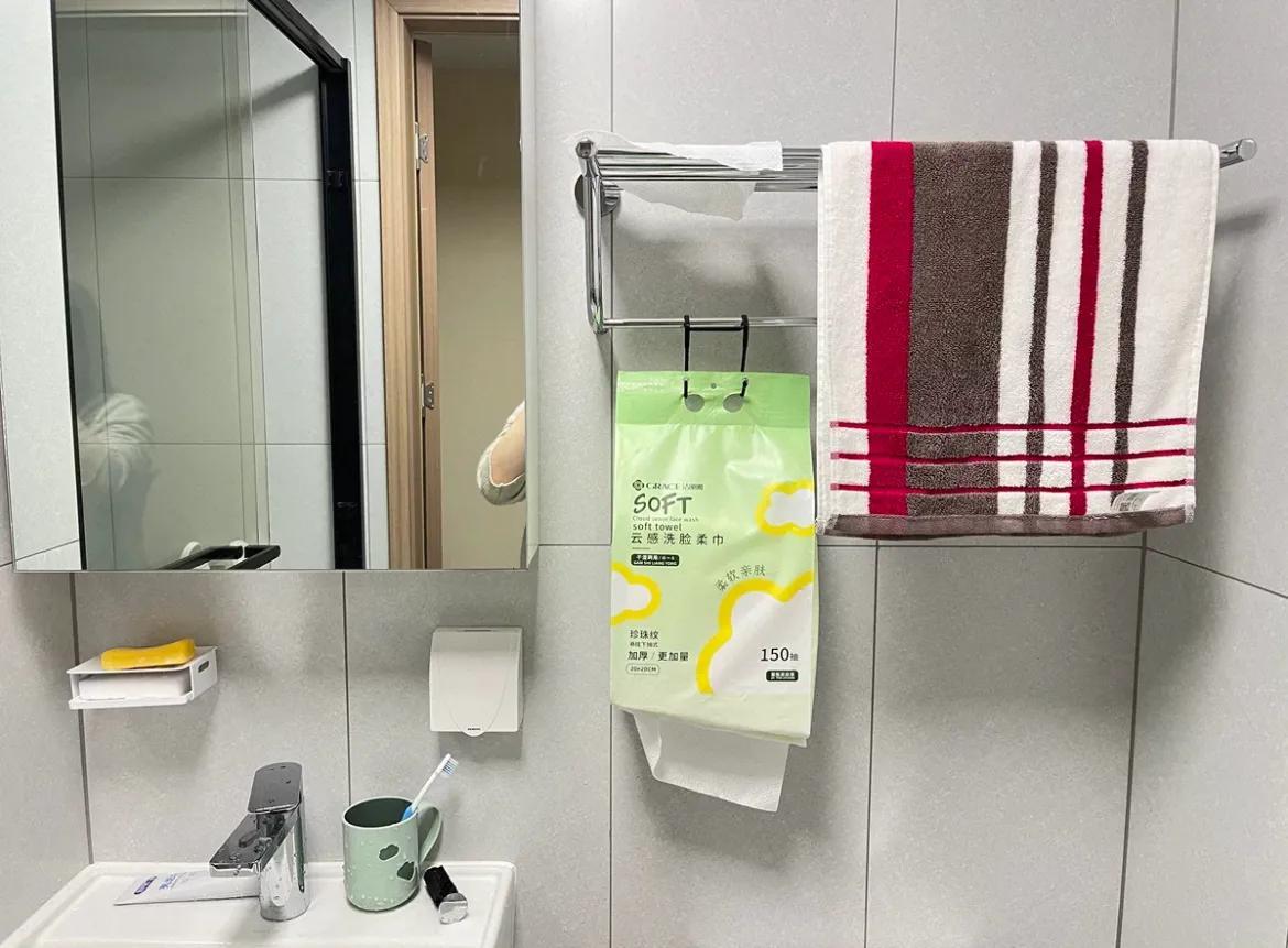 把它兩片拉開距離,紙巾豎改橫,同時可以放下溼巾和廚房紙巾,容量瞬間增大了一倍;