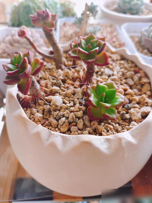 還有新買的多肉剛上盆,根沒扎穩,靠氣根頂着適應環境。