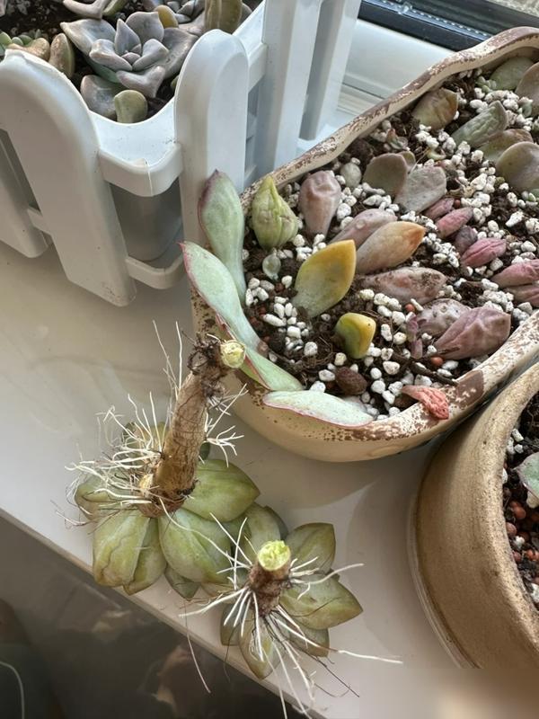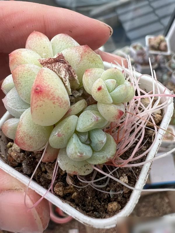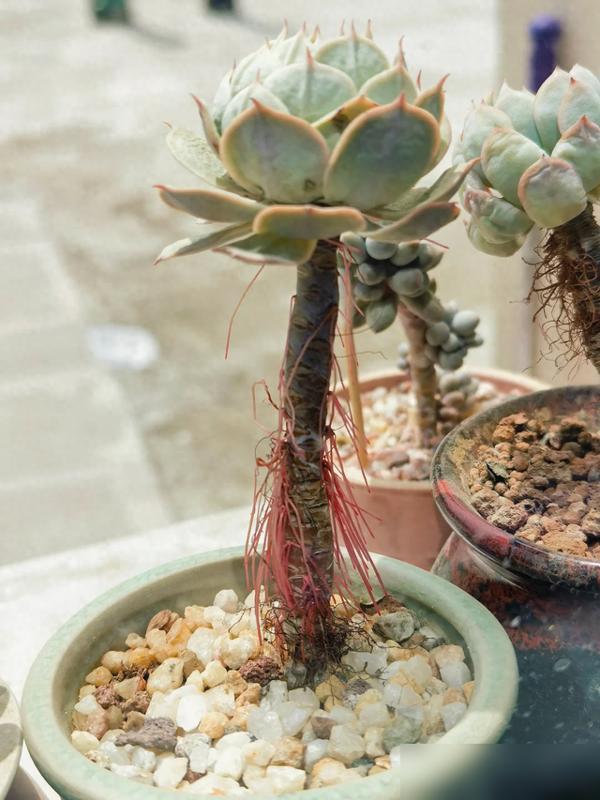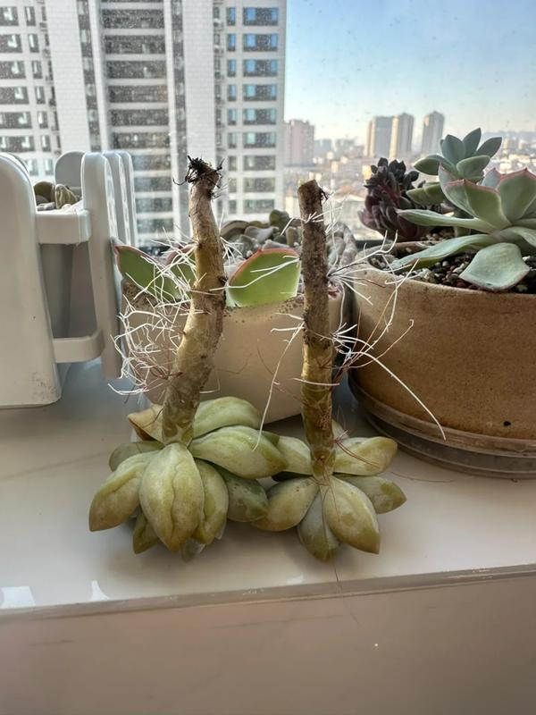 個別品種像法師、乙女心,天生愛長氣根,稍微缺水就冒須,算正常現象,別太緊張。