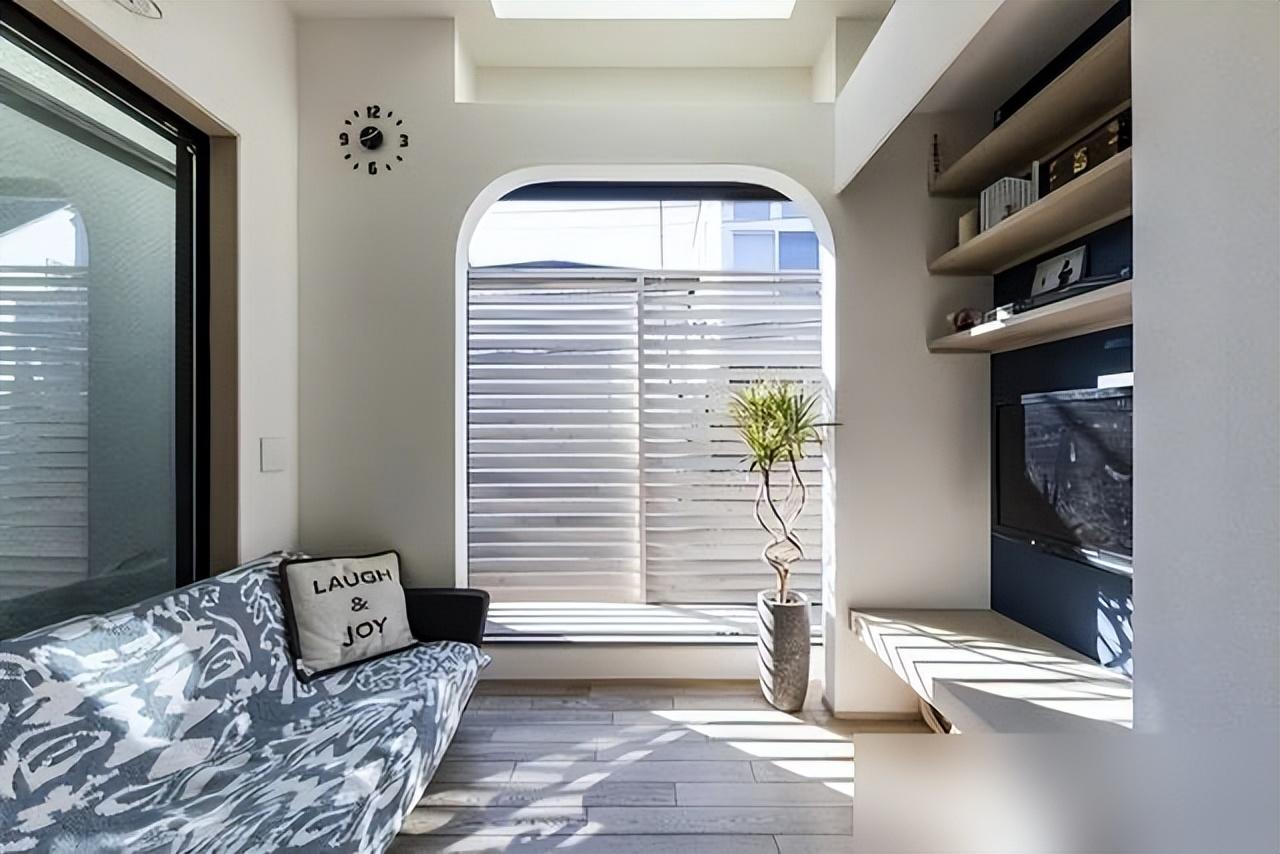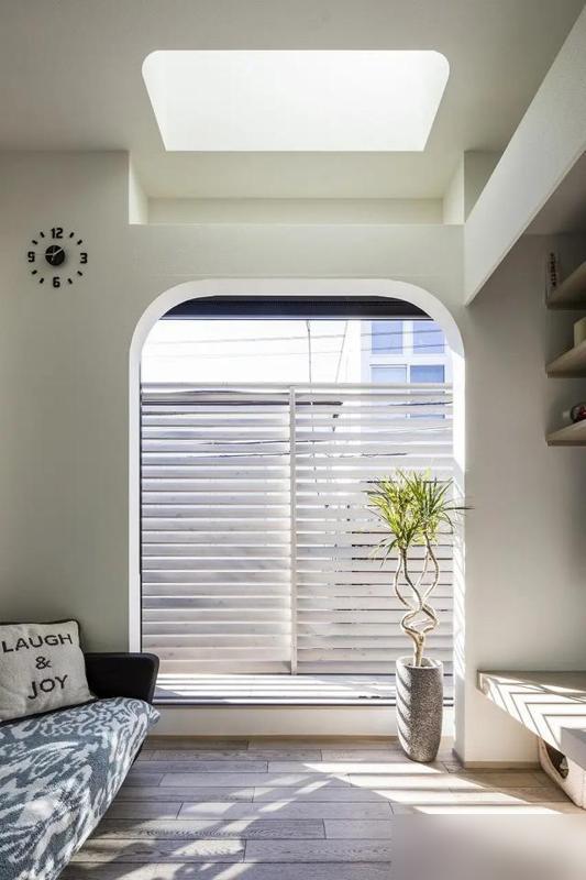 百葉窗擋隱私不擋光,鄰居間的窄縫引自然亮,半地下室開小窗透氣。