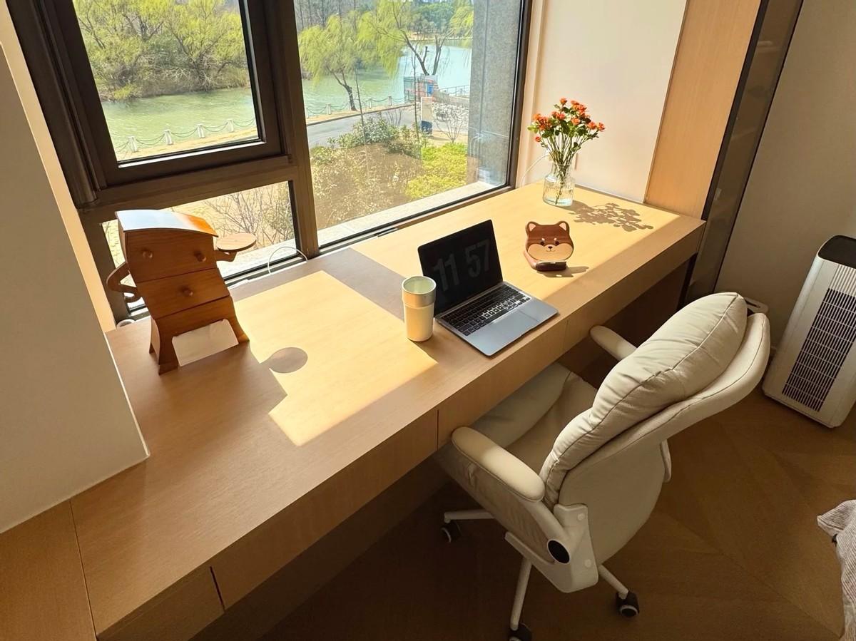 這一次的裝修,將飄窗改成了化妝臺,除了作爲化妝臺來使用,我發現還可以作爲書桌使用。