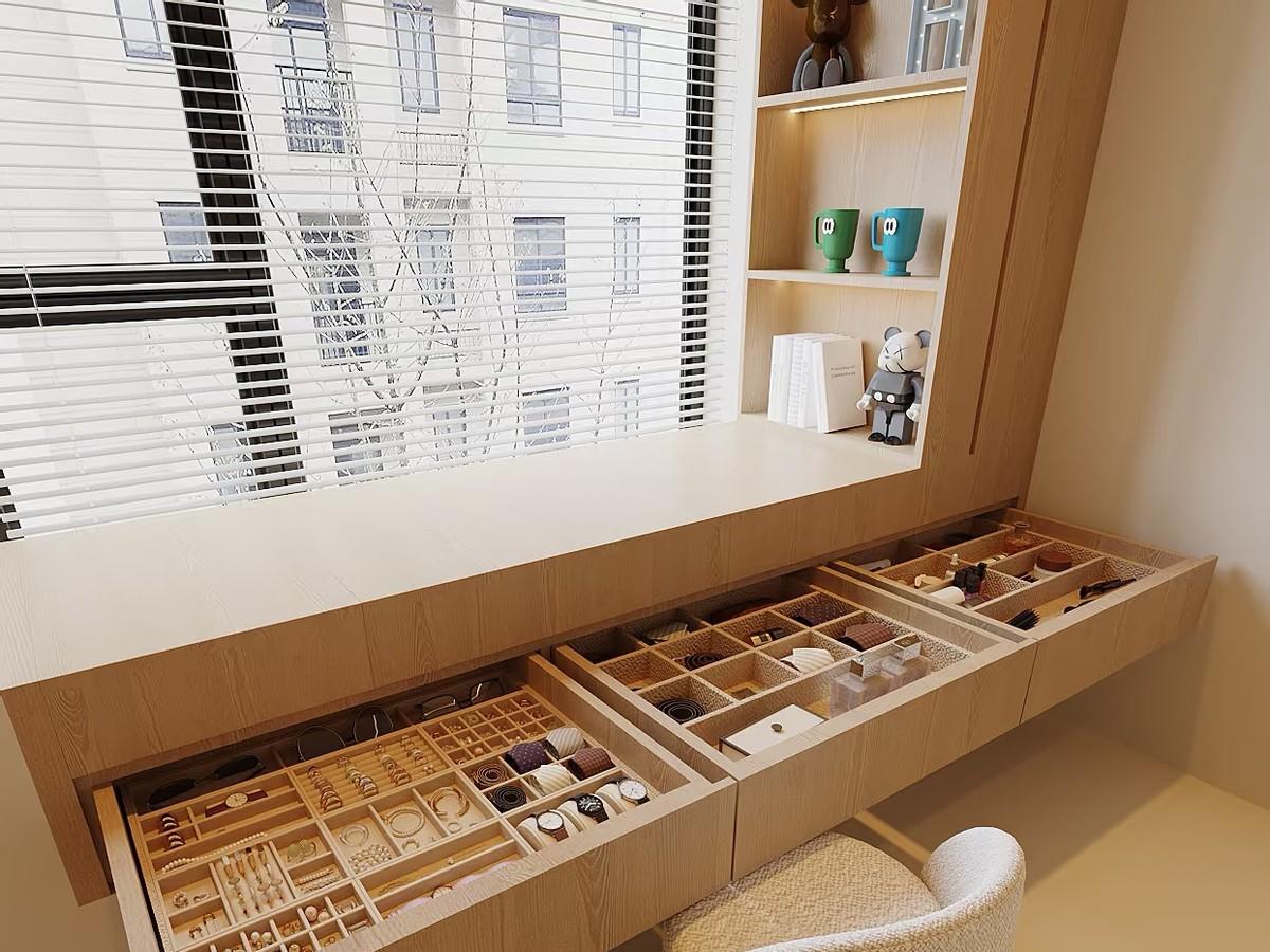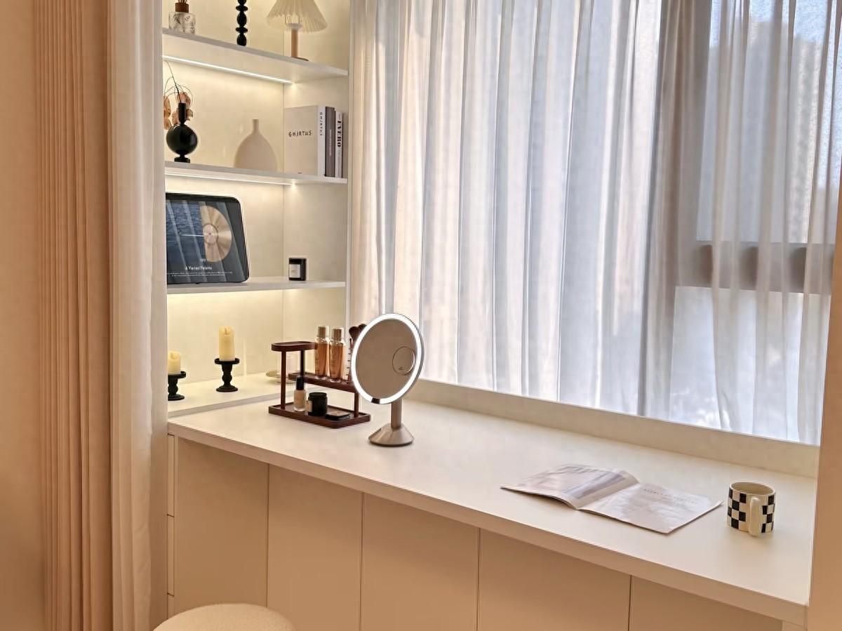 這一次裝修,飄窗改造成的第一個功能區:整體化妝臺。