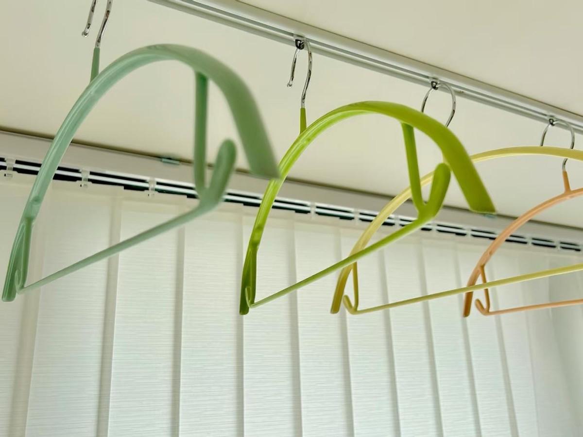 在晾衣服的時候,就把衣服直接掛在衣架上,然後掛在晾衣鉤上就可以了。