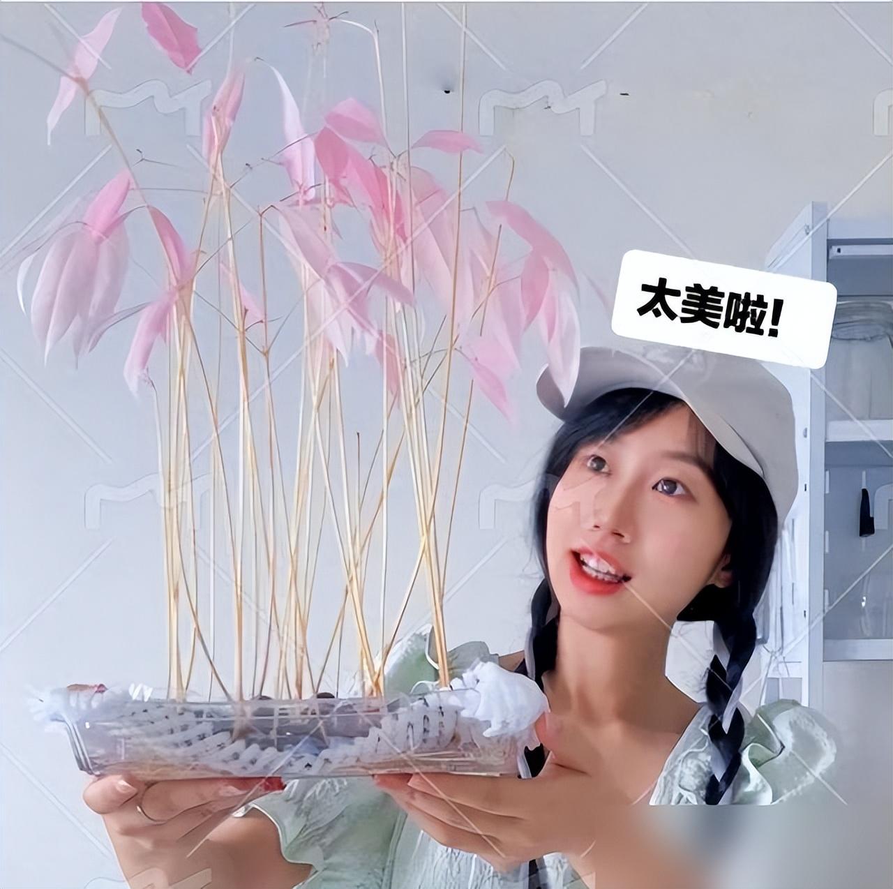廣東一姑娘將荔枝核丟水裏,20天成“粉森林”,網友:氛圍感絕了