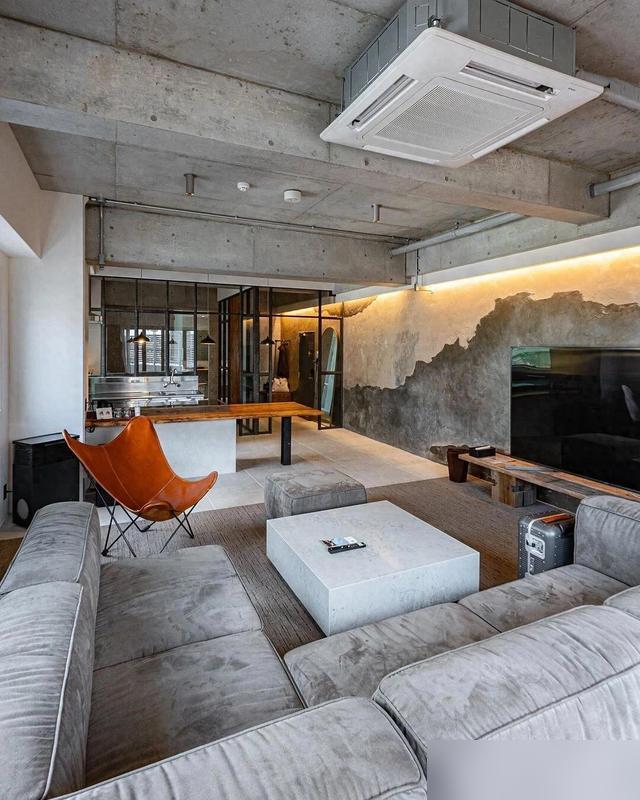 北京這小夥偏不按套路出牌,水泥頂直接裸露着,牆面只刷一半,連吊頂都省了——乍一聽像毛坯房,可實際效果反而高級得不行。