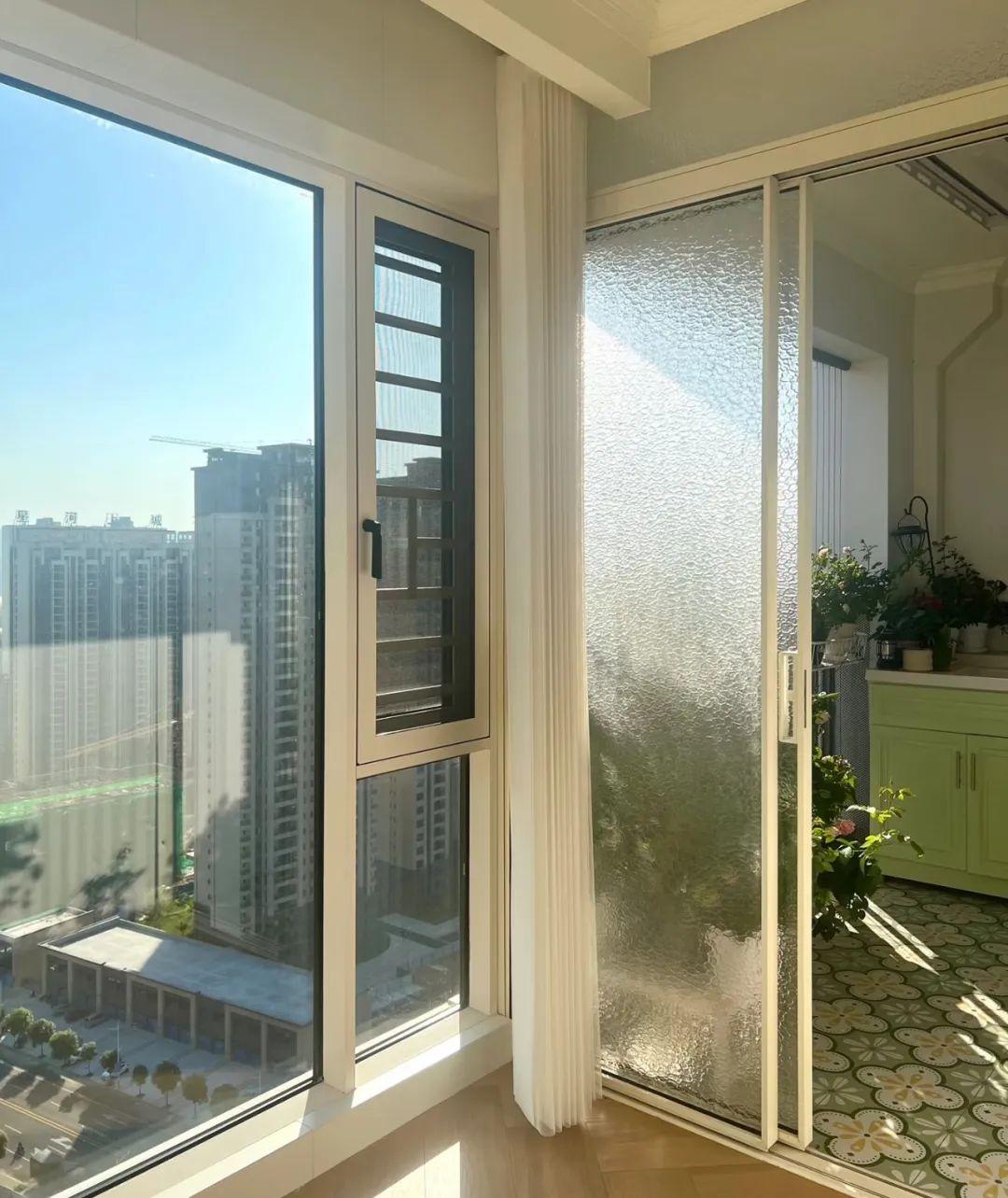兩個陽臺之間可以用移門、捲簾窗等隔開,不僅顏值高,能隔絕噪音與灰塵。
