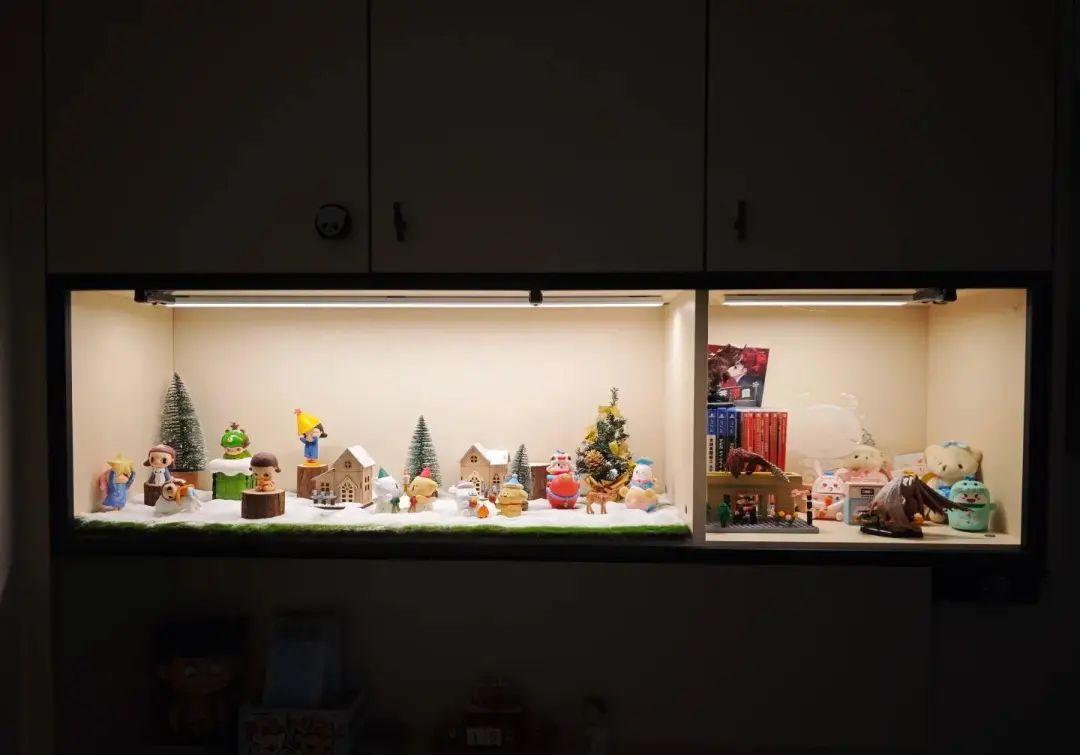 我在櫃頂還加了充電式感應燈帶,不用開玻璃門燈就可以亮,每天晚上回家開門看着亮起來的小空間真的非常治癒。
