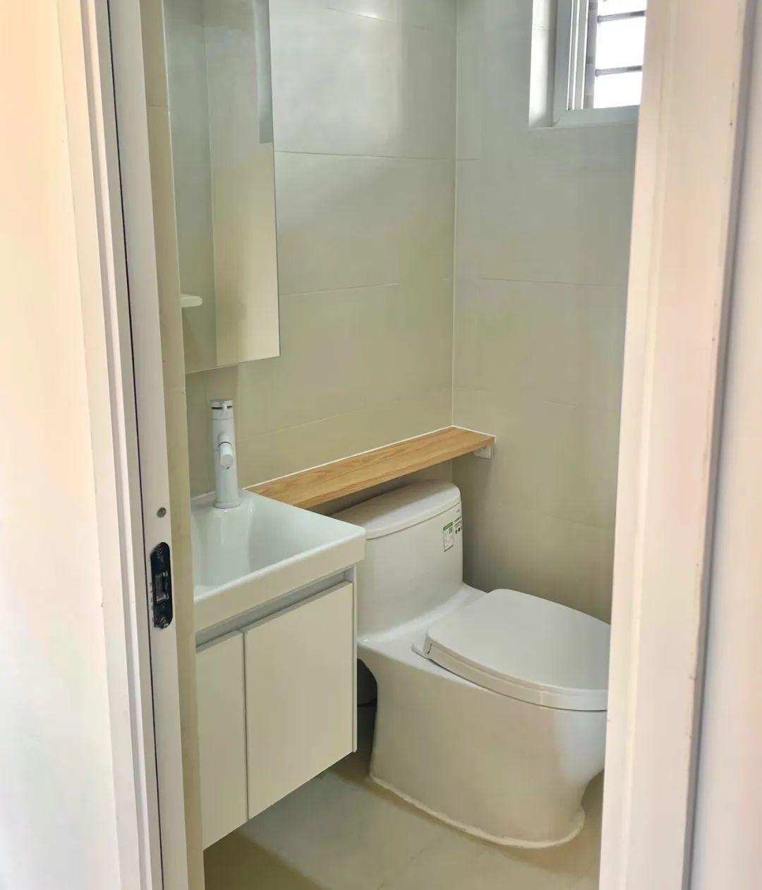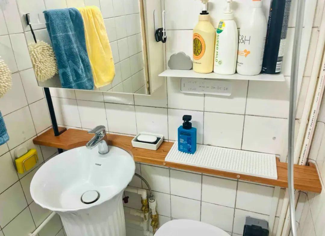只有一平左右的衛生間,放不下常規的洗手盆,想了很多方案,直到有天給我刷到了日式衛生間的做法,直接用木條代替櫃面,這不正好可以借鑑了!