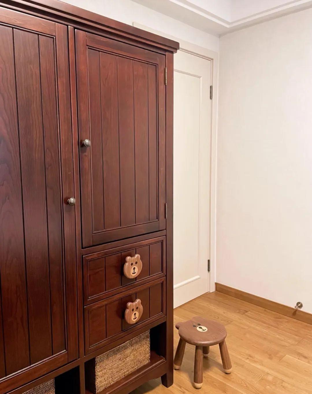 住友@西部熊小姐說:家裏裝修走美式復古風,但是小朋友的房間還是想童趣一點,淘到一款小熊把手,圓圓胖胖的小熊形狀,替換原來單調的圓型櫃把手,瞬間提升了整個房間可可愛愛的氛圍。