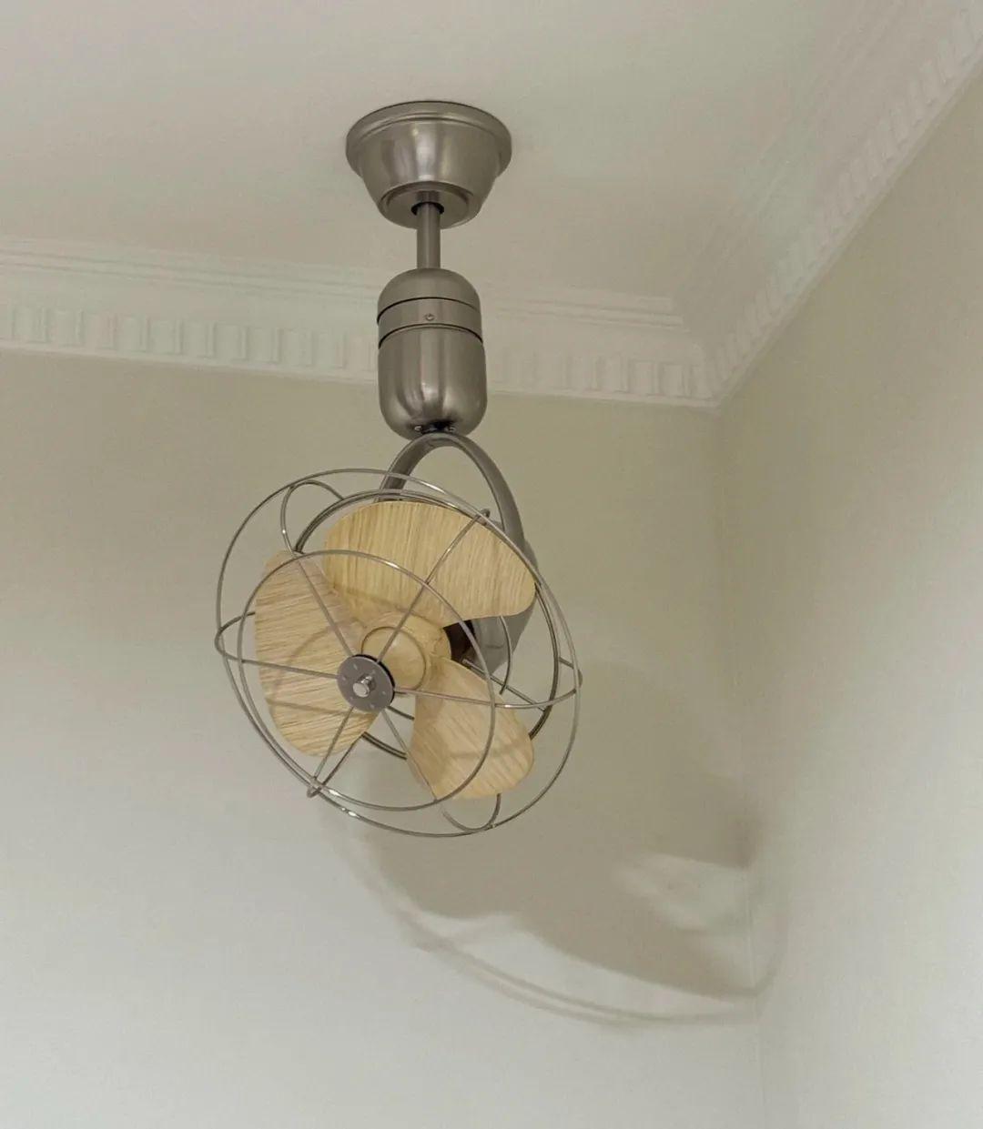 住友@黑粒:原本留作吊燈位置,有了小孩反而不方便掛太長的吊燈了。夏天來了,正好想裝個電扇,遺留的電源做了一個風扇燈,真的很涼爽。