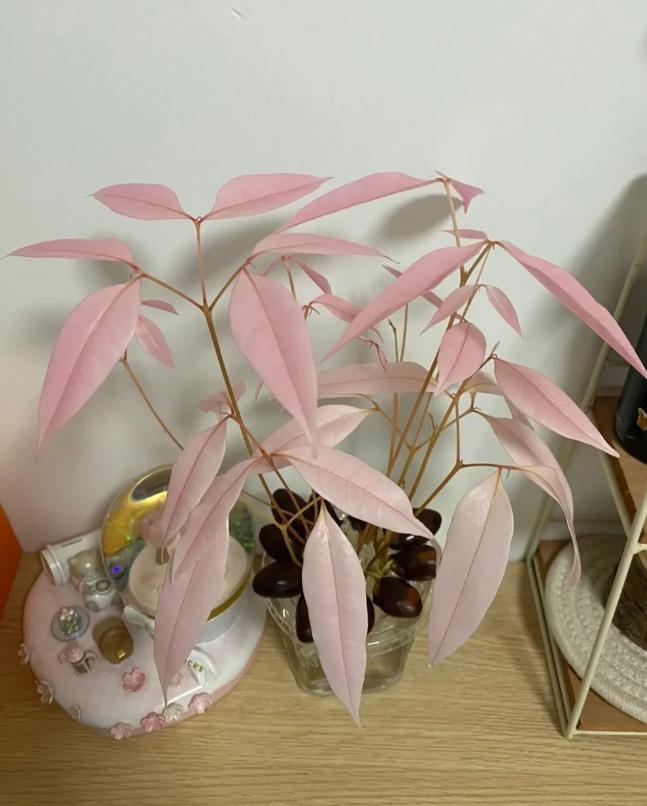 看看上面網友的荔枝盆栽,一開始也是“粉色”葉子(依稀還能看到一兩片葉子是粉色的),當把它挪到見光的地方之後,葉子就開始慢慢變綠了。