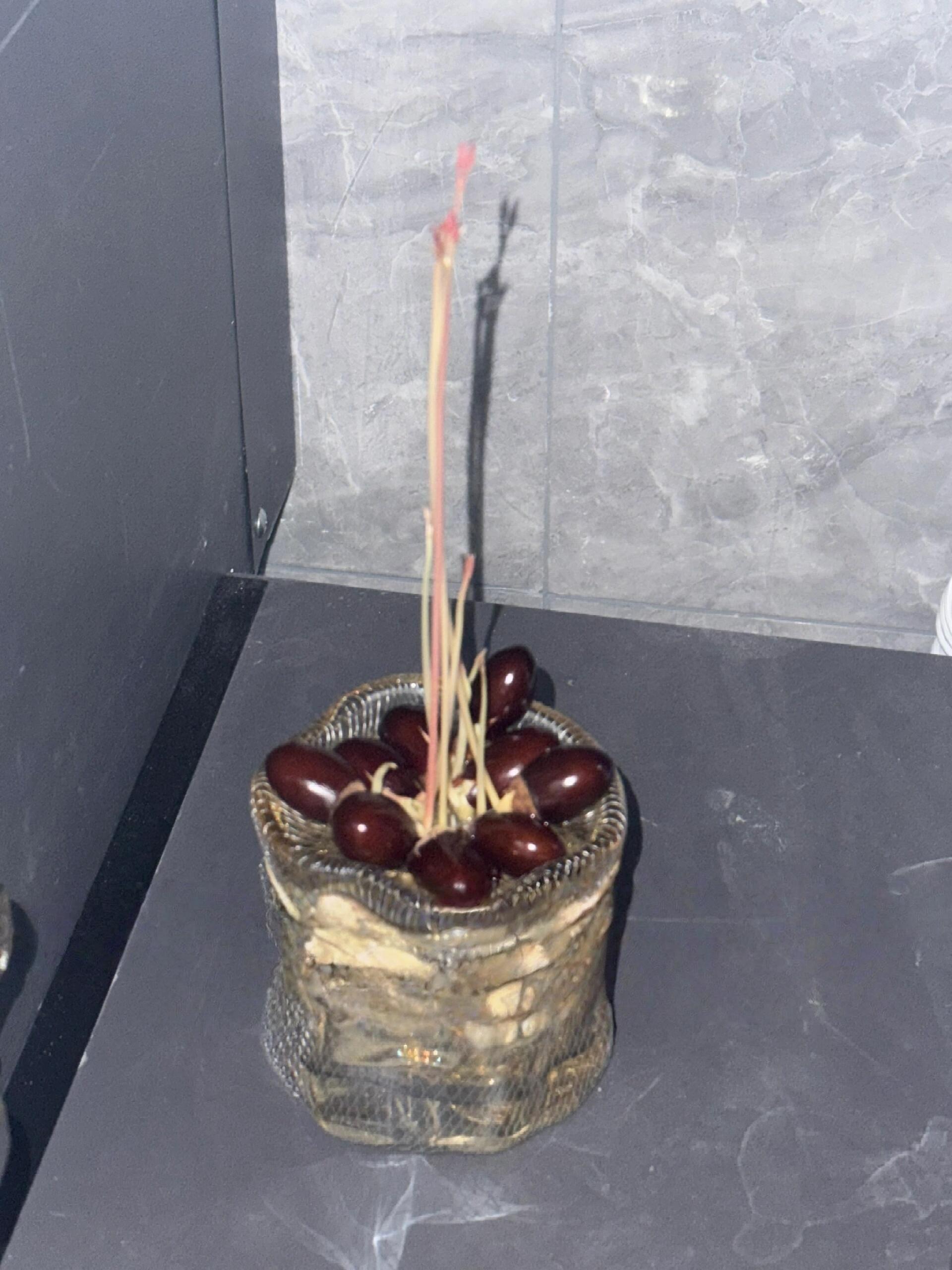 第一次被“荔枝核的殺傷力”驚呆了,泡水裏22天,長成“粉盆栽”