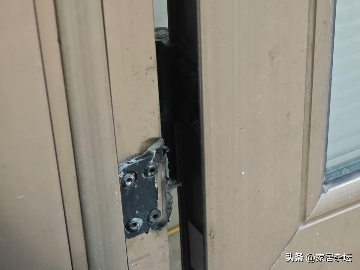 這就是由於鋁合金型材的壁厚不太厚,合頁受力有問題而導致的各種各樣的門的故障。