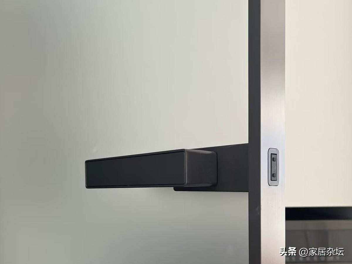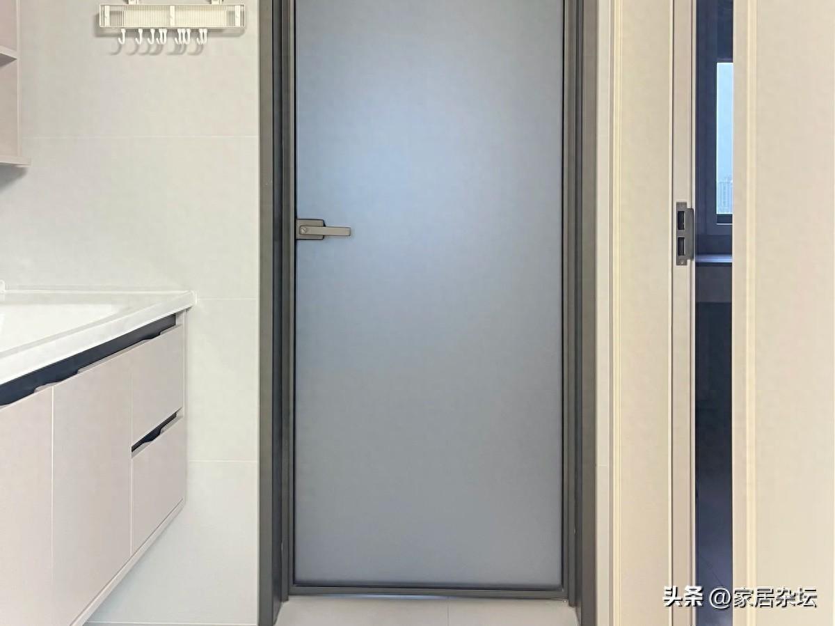 門是採用的極窄邊框設計,因爲她家也是現代簡約風,所以邊框是選擇了1.8釐米的邊框,特別窄。