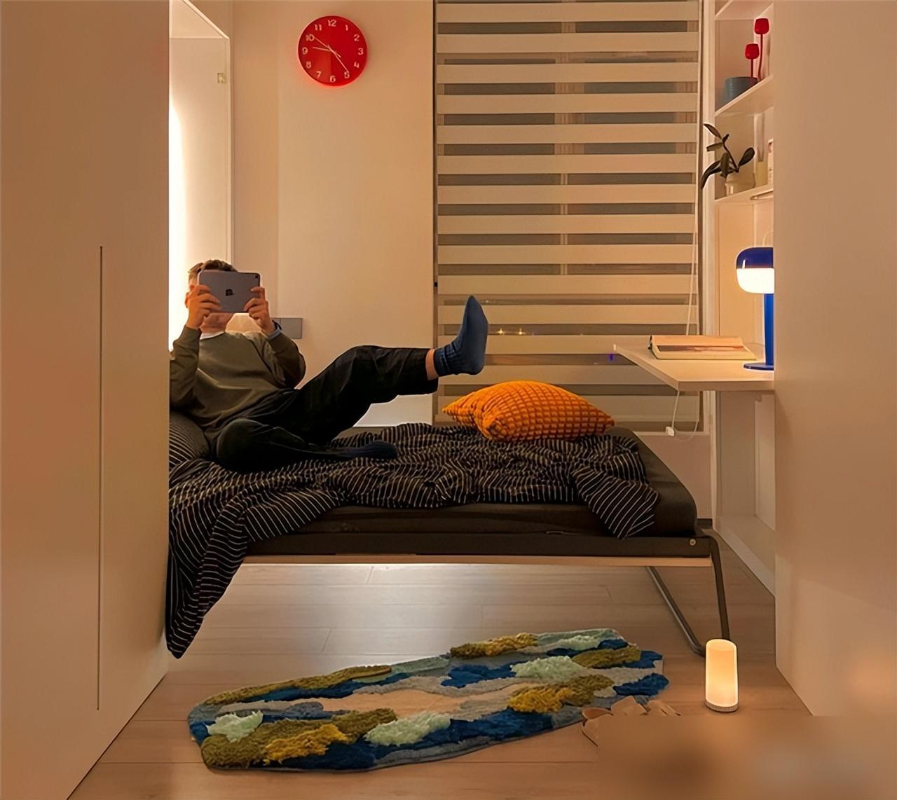 墨菲牀一翻下來就能睡人,平時收起來完全不佔地兒,配上書桌和隱形收納,小戶型也能玩出大花樣。
