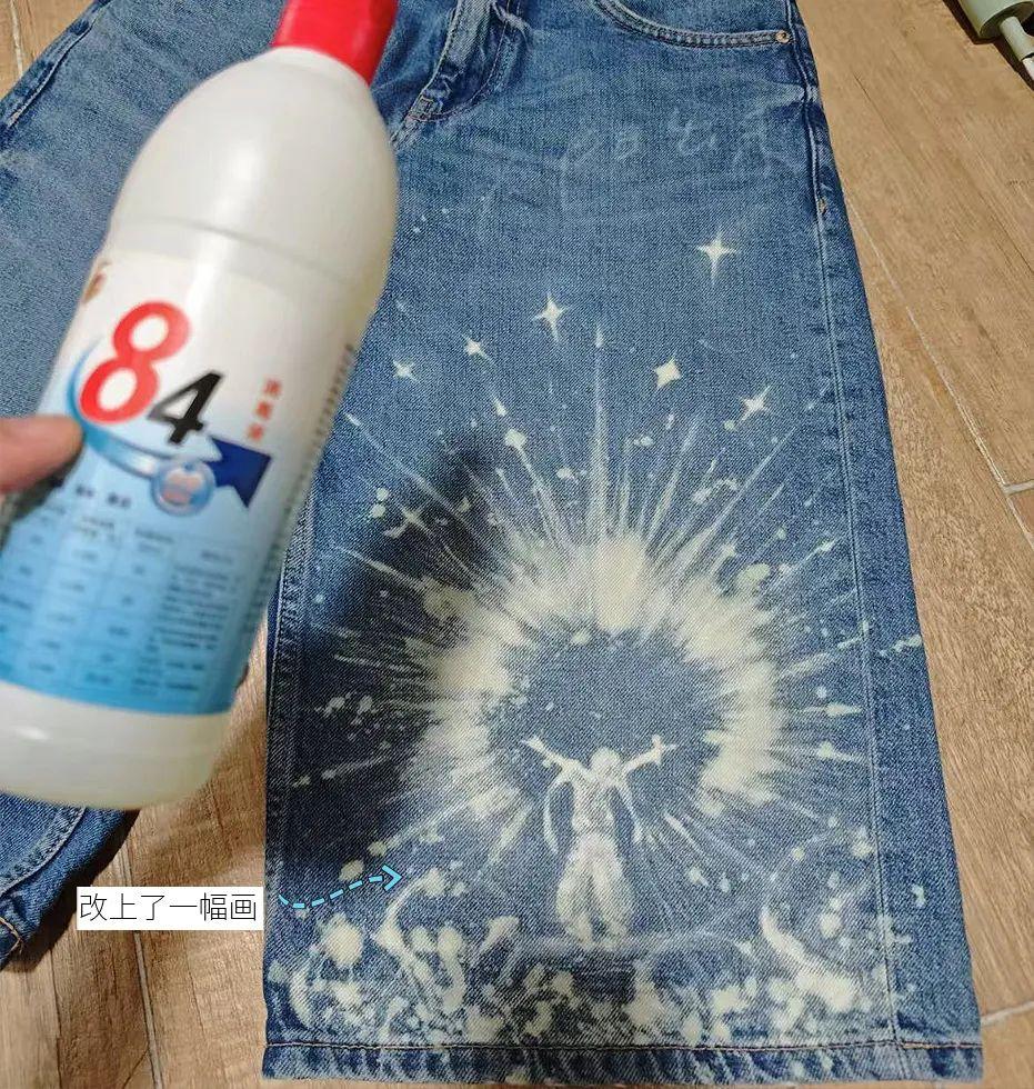 靈機一動,利用84在舊牛仔褲上畫了一幅自己喜歡的畫,沒想到效果出奇的好看,瞬間讓褲子“煥然一新”,又能多穿一年。