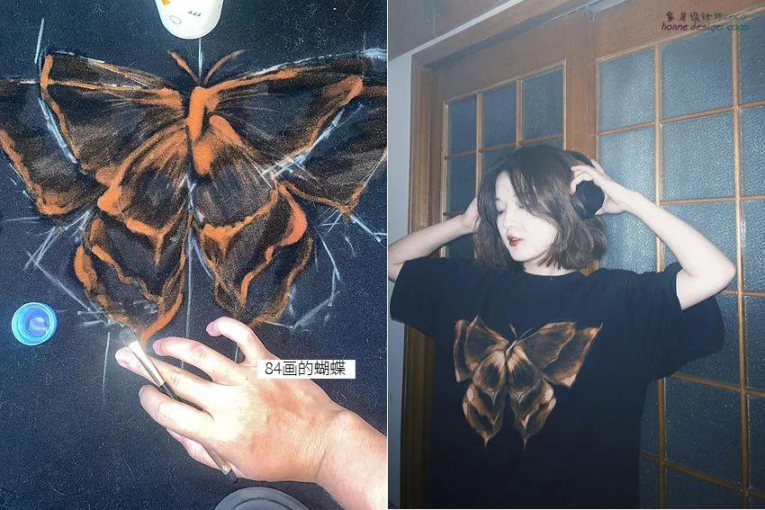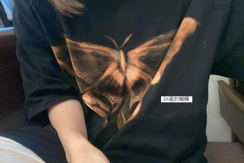 她竟然用84在一件黑的純棉T恤上,漂染了一個褪色蝴蝶,簡直美呆了![好想買過來呀]