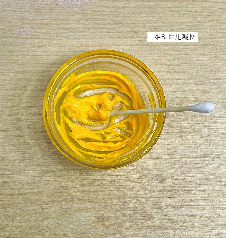 - 把維生素B2片碾碎,用少量脣炎膏調成糊狀。