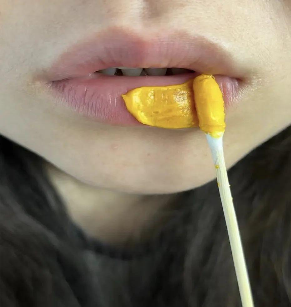- 用棉籤蘸取維生素B2糊,均勻地塗抹在嘴脣上,輕輕按3分鐘