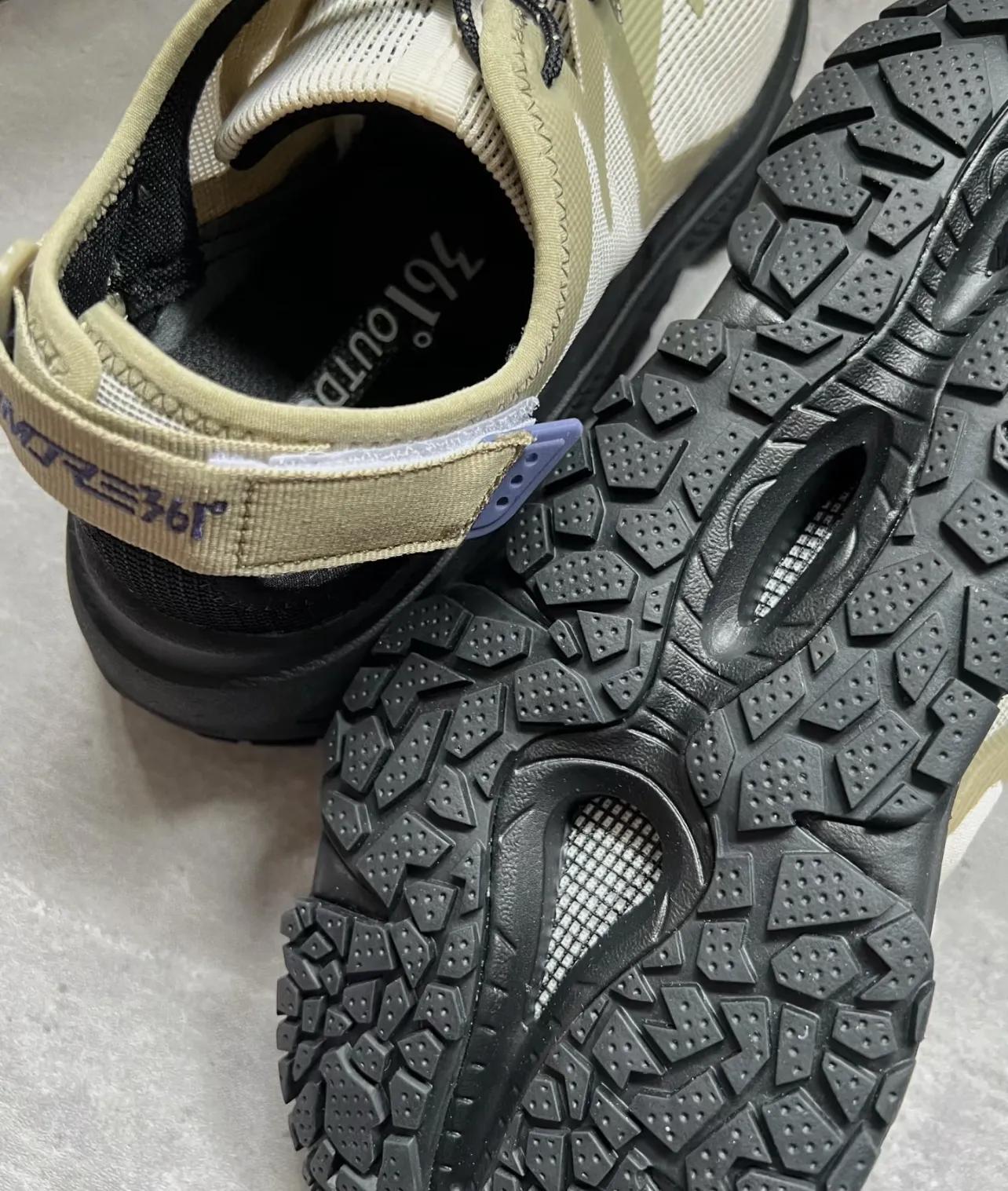 它的腳感超能打,抓地穩如狗,齒紋橡膠大底,沙灘礁石隨便踩,防滑耐磨超安心!