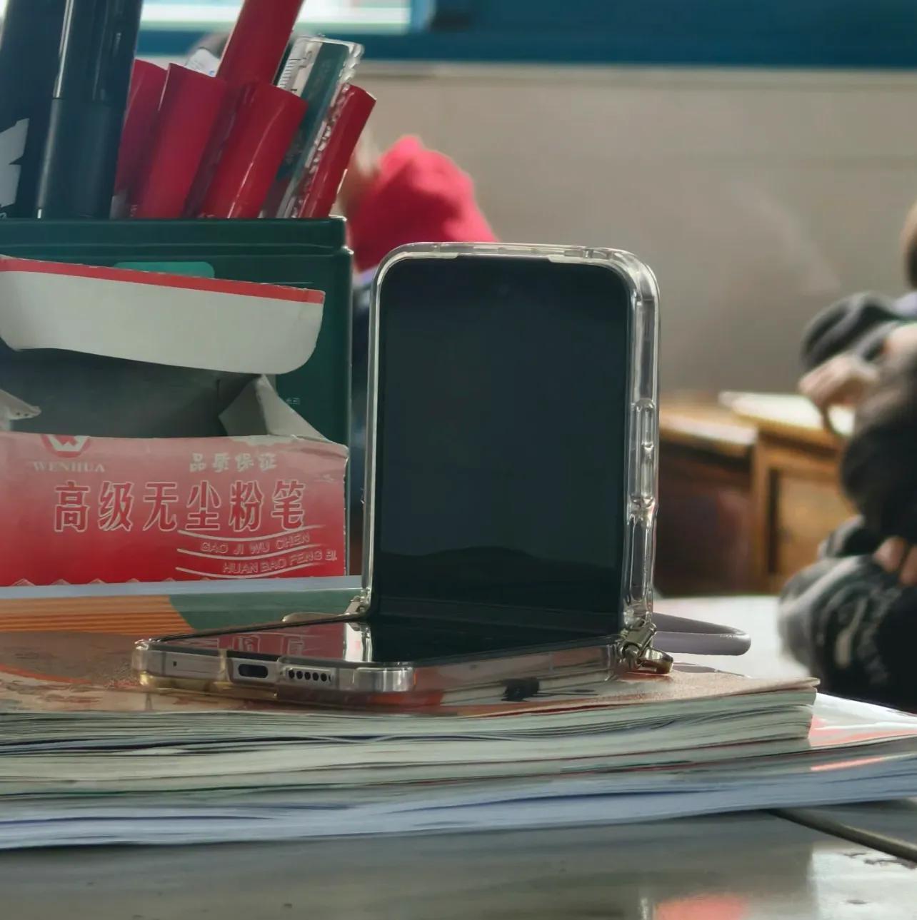 第一步:把摺疊手機展開,放在講臺上假裝錄像;