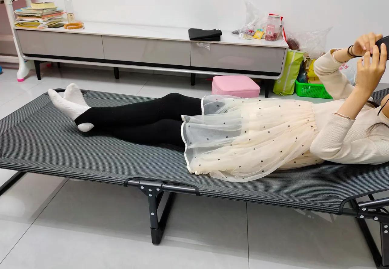 隨便找個犄角旮旯,行軍牀展開即用,支撐性很好,整個人穩穩當當的,躺在上面刷劇、聊天、睡覺,午間快樂時光,此刻你就知道行軍牀的含金量了吧!