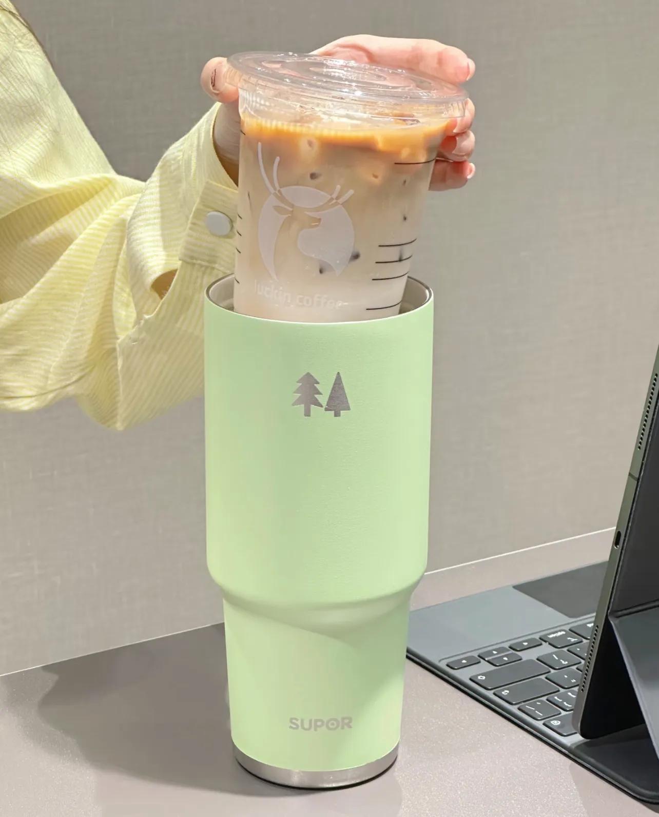 現在已經升級爲我的飲料搭子啦,每次去買冰咖啡必須帶着,直接打包到我的杯子裏嘎嘎保冰,杯口很大,直接放進去還不用洗杯子,逛街一下午杯子裏的飲料還是冰的!