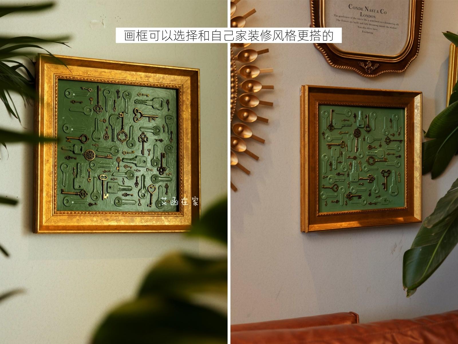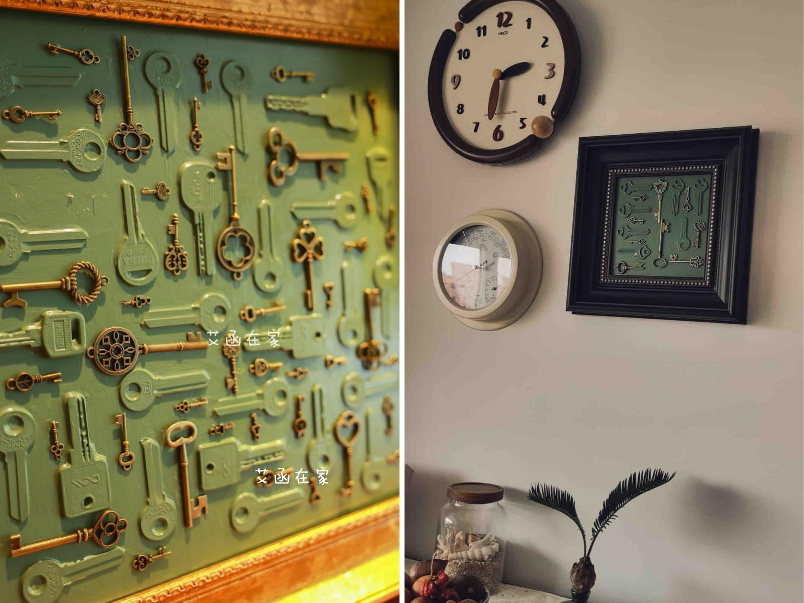 於是又入手了幾個復古的裝飾鑰匙,和這些舊鑰匙做個搭配,改造成了一幅復古鑰匙裝飾畫,獨一無二,簡直太有格調了!