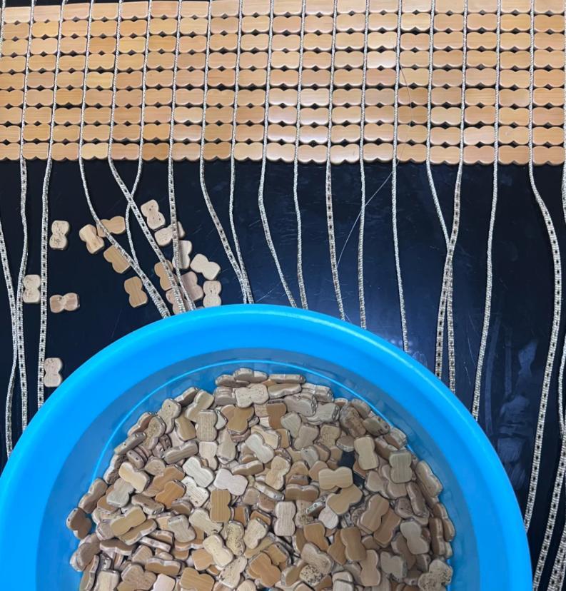 第一個,是"懶人法":直接把涼蓆沿一個方向剪開(比如橫着剪了,就別再豎着剪否則會散架),然後拆掉捨棄兩排竹片塊,把多餘的魚線打個結就行。這樣雖然只能改小不能改大,但是特別省事。