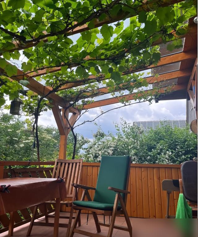 現在看這葡萄架,夏天遮陰納涼,秋天伸手摘果,比買的新鮮多了。
