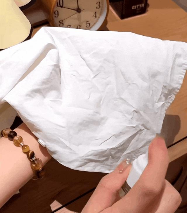 往衣服褶皺處噴點水,拿出加熱好的直板夾,在有褶皺的地方輕輕夾兩下,褶皺立刻就消失了。