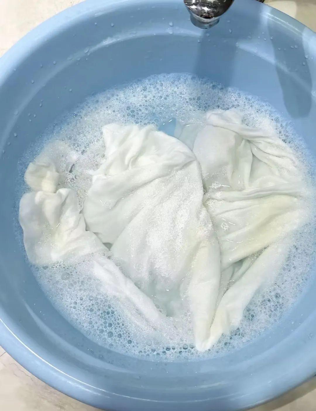 攪勻後放入被染色的衣服,泡一段時間後,稍微搓一搓,衣服上被染的顏色就能輕鬆祛除了。
