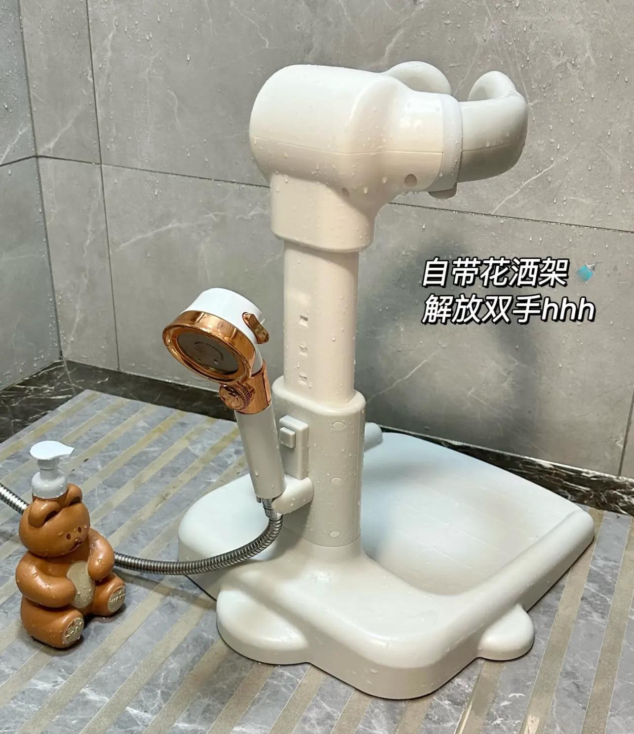它自帶花灑架,我一個人帶他就能輕鬆搞定洗澡;