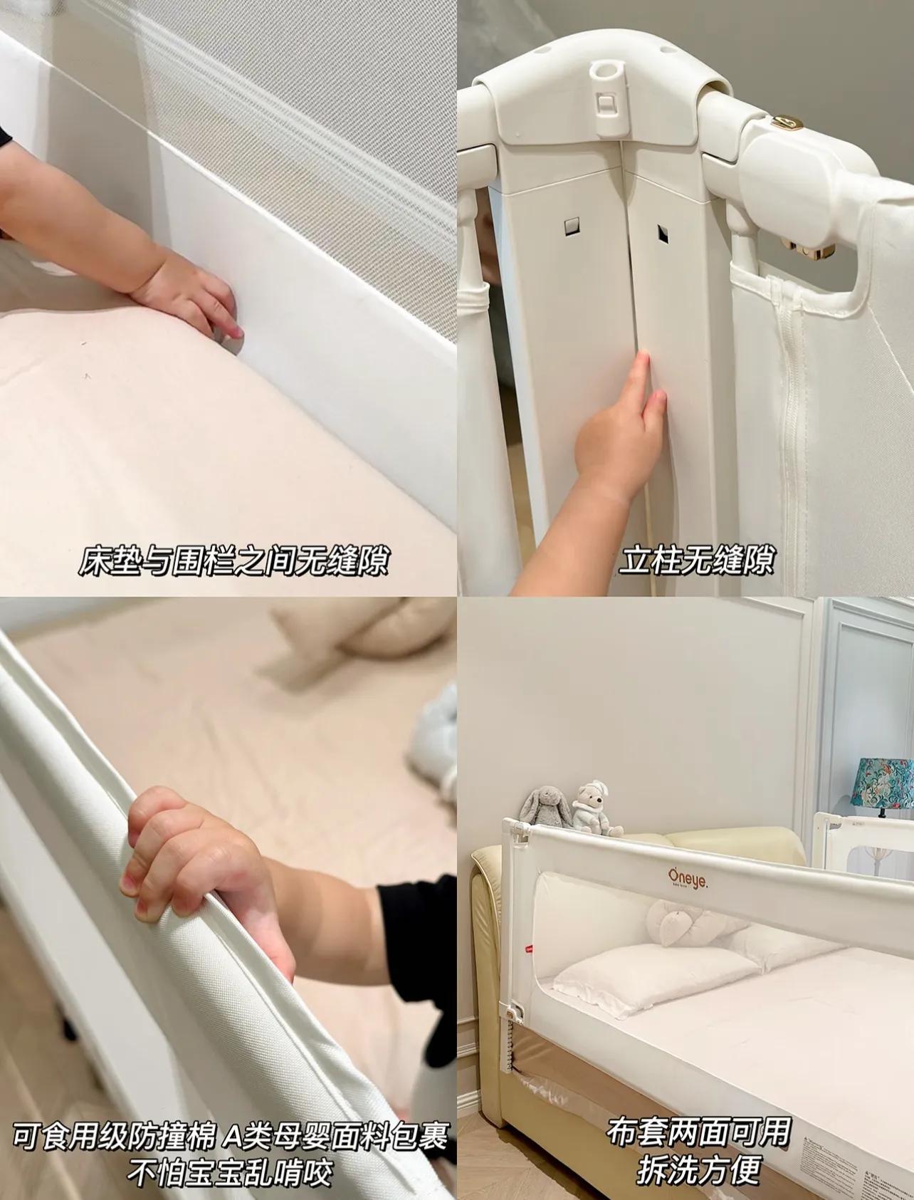 它的每一面圍欄都可以輕鬆升降,單手就能操作,不管是抱寶寶上下牀,還是日常整理牀鋪,都非常方便;