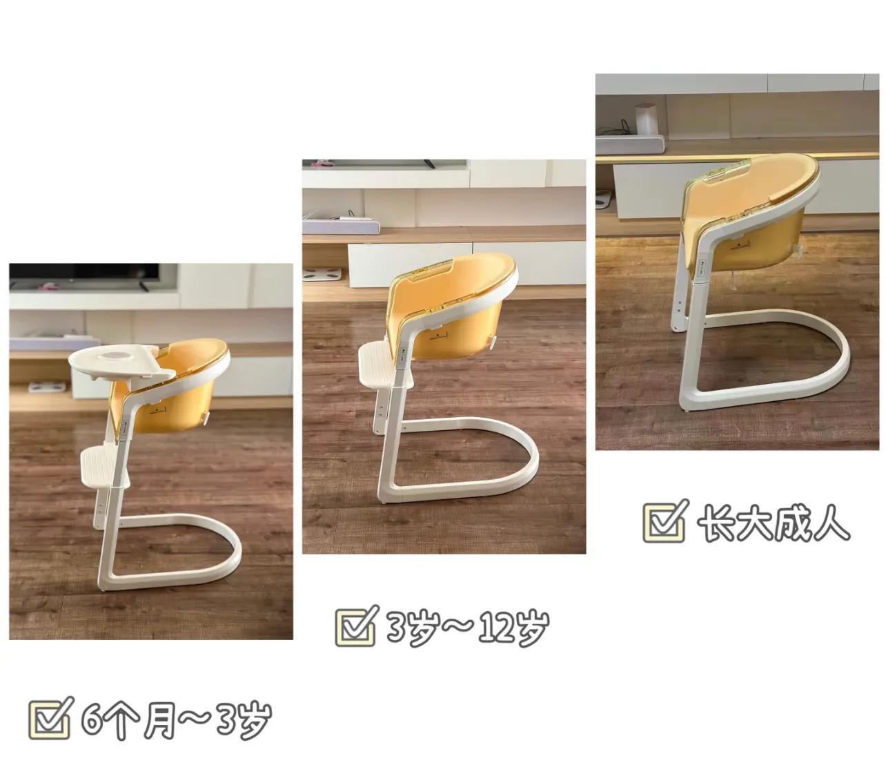 它的高度可調節,小時候是餐椅,等長大一點拆掉餐盤,立馬變身學習椅,等再長大一點拆掉腳踏變家用椅,閒置?那不存在!