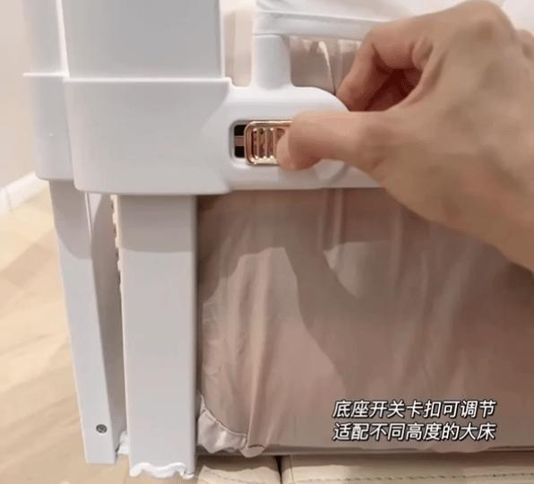 丸Y牀圍底座開關卡扣可調節,不管牀墊多厚都能適配。換牀單也輕鬆,不用拆卸圍欄,調高就能搞定。
