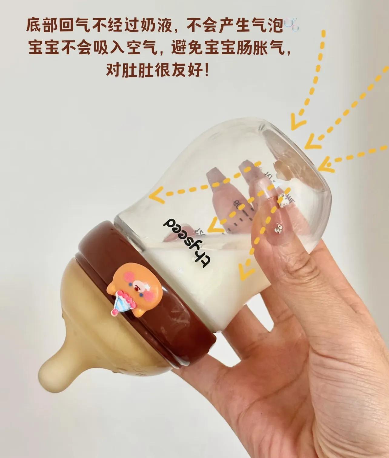 世喜新生兒奶瓶,主打防脹氣!奶瓶的底部有一個回氣閥,從底部進行回氣,寶寶喝奶的時候,氣泡不會經過奶液,喝不到氣泡奶,肚肚自然就不那麼脹氣啦!