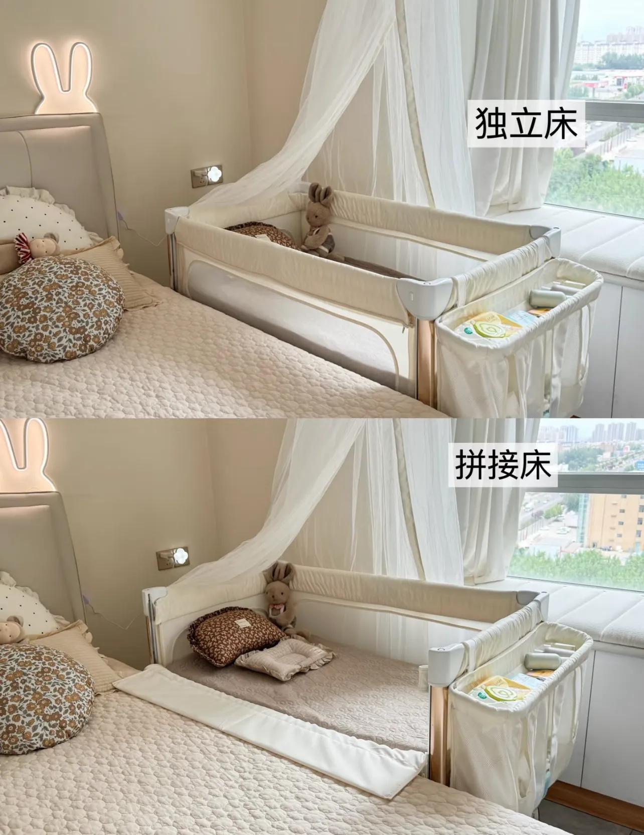 而且,它還是獨立牀+拼接牀+搖籃牀+尿布臺+遊戲牀,一牀5用,想閒置都閒置不了。