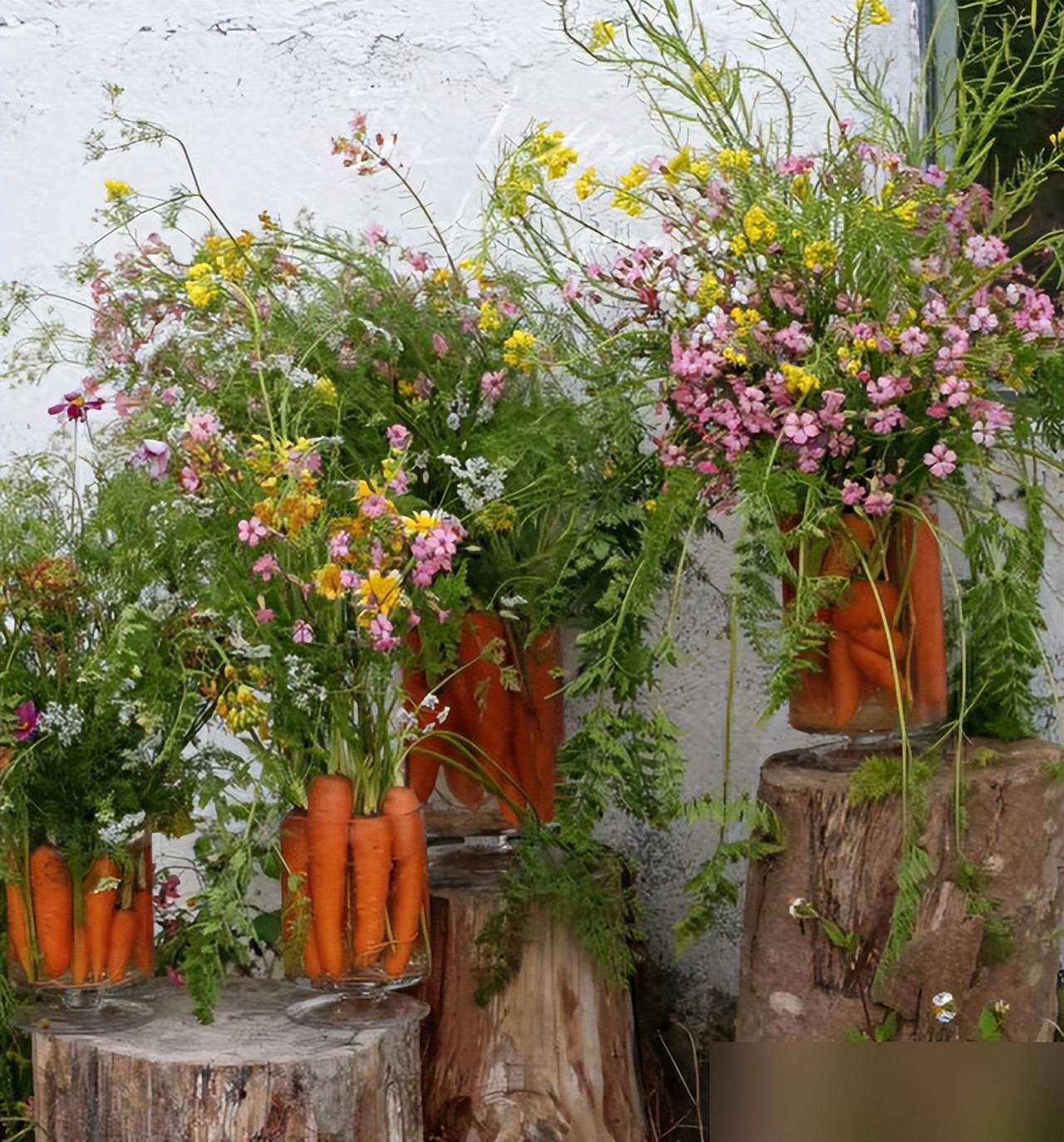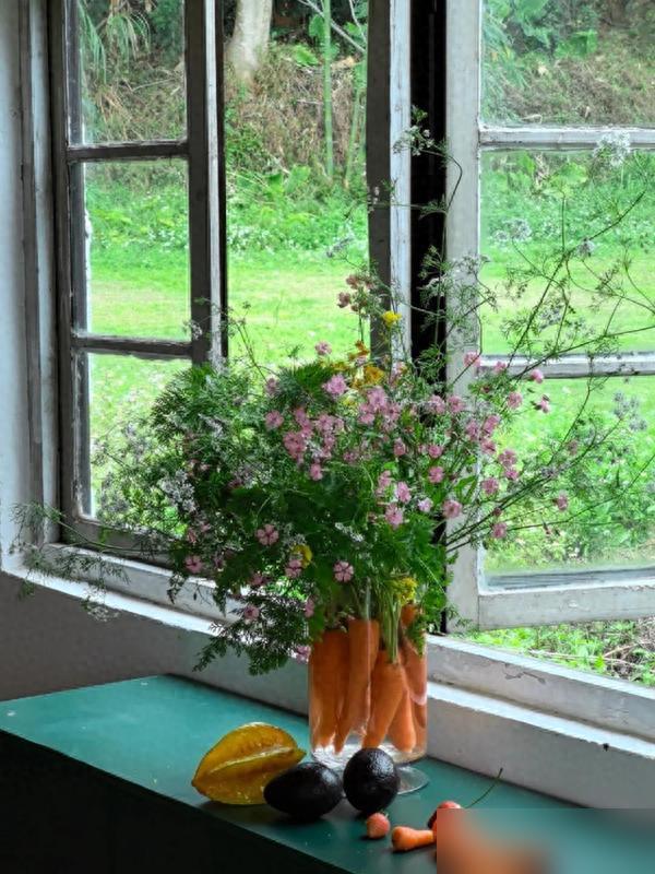 老婆把“胡蘿蔔當綠植”養客廳,竟然開花了?網友:別說,還挺美