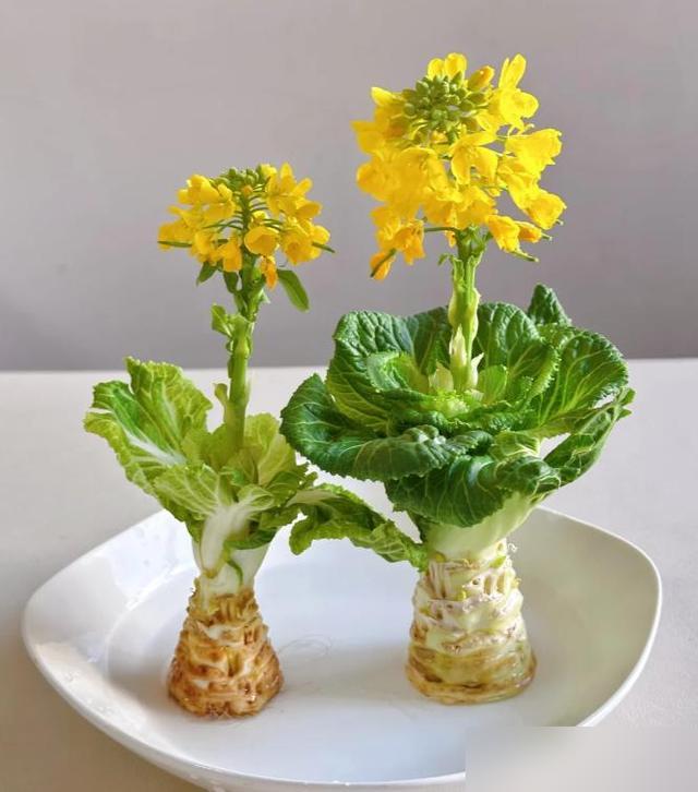 白菜根更是個急脾氣,淺水盤裏泡七八天,嫩黃菜薹"噌"地頂出來,擺在餐桌上活脫脫一捧油菜花束。